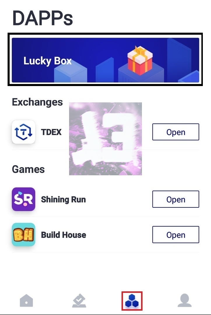 3. Заходим во вкладку DAPPs и нажимаем на «Lucky Box».