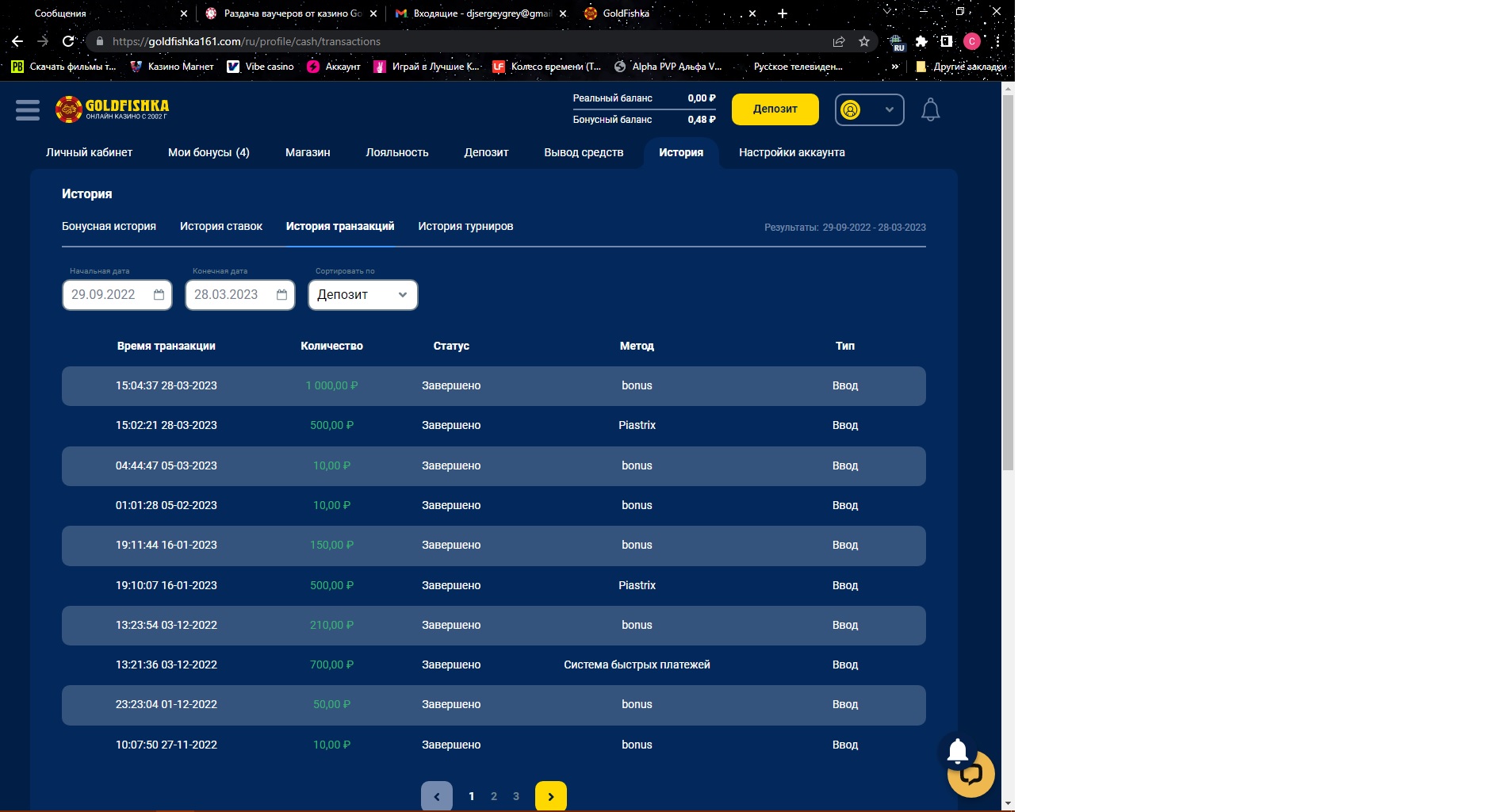 У нас осталось 3 промокода, предлагаю отдать их тем, у кого был депозит в КАЗИНО GOLD FISHKA если не в этом году, то в прошлом ) кто первый выложит скрин наличия депозита, тот и получит промод, напоминаю у нас осталось 3 приза!