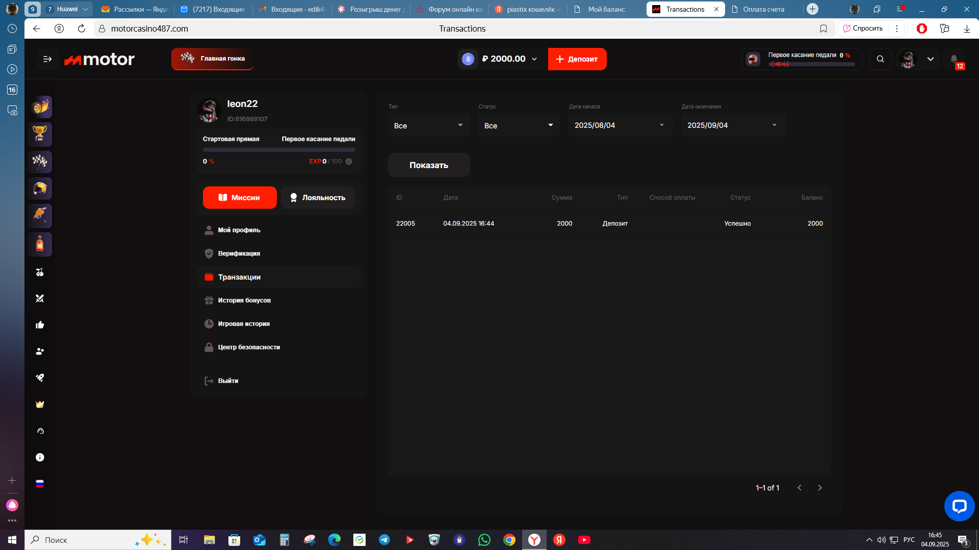 1 место 2000р для депозита в казино Мотор и 500 форумных кредитов