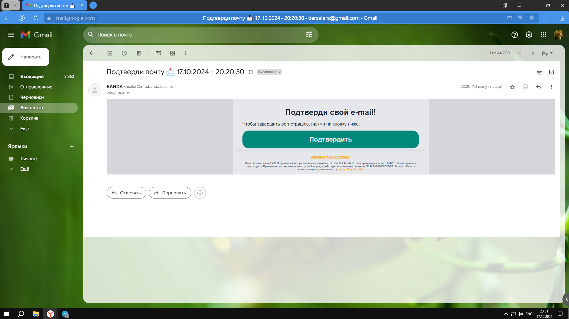 S suric66 Ловец Скейтеров Проверенный 14 Июн 2020 111 33 59 Credits ¢133 17 Окт 2024 #33 Участвую Вложения Screenshot_2024-10-17-18-33-03-002_ru.mail.mailapp.jpg 376.3 KB Просмотры: 41