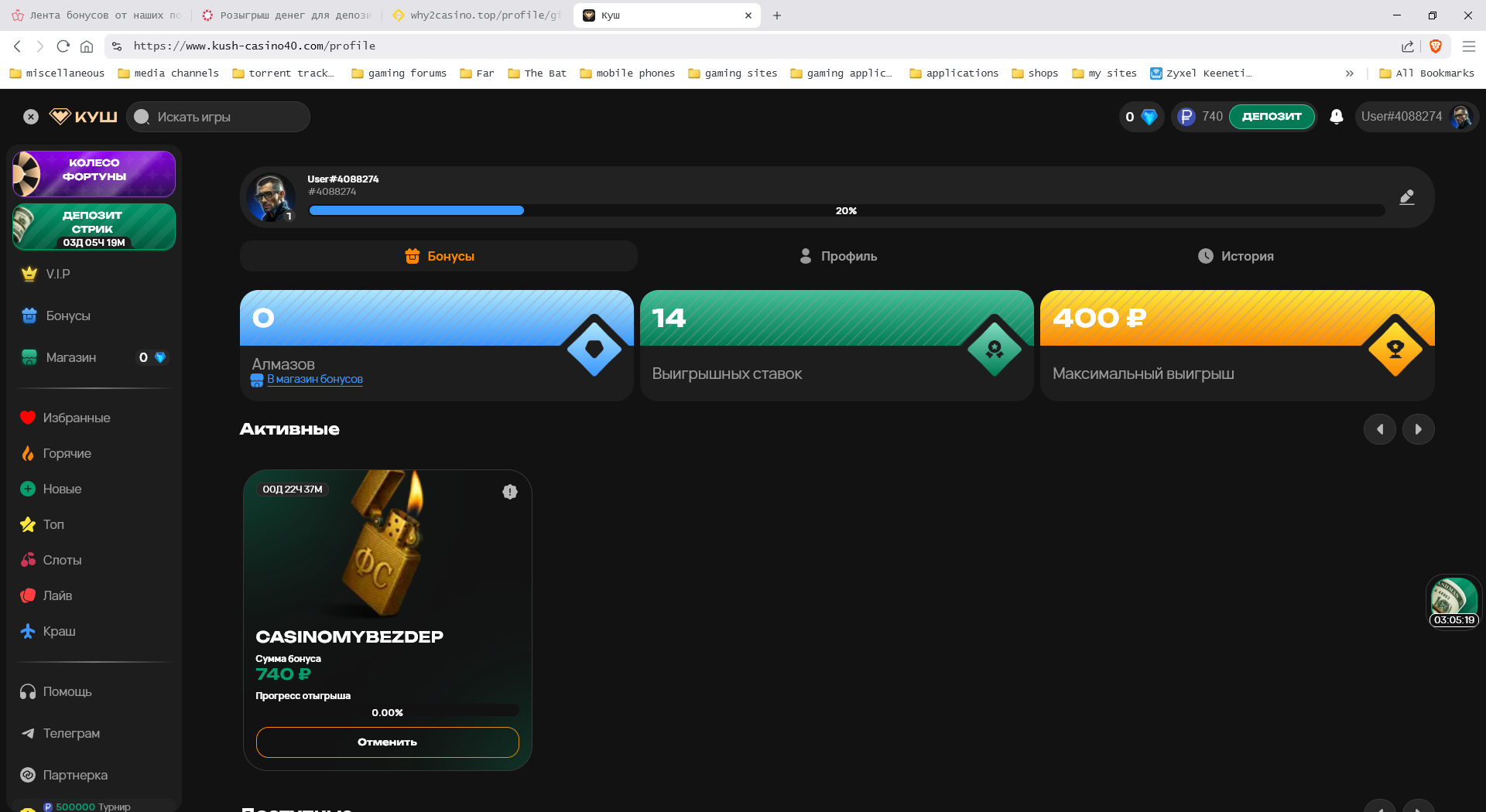 1. Зарегистрироваться в новом казино по форумной ссылке и промокоду CASINOMY, CASINOMYDEP или CASINOMYBEZDEP (описание бонусов в теме обзора) , выложить скрин из профиля где виден промокод CASINOMY, CASINOMYDEP или CASINOMYBEZDEP и вашим ID