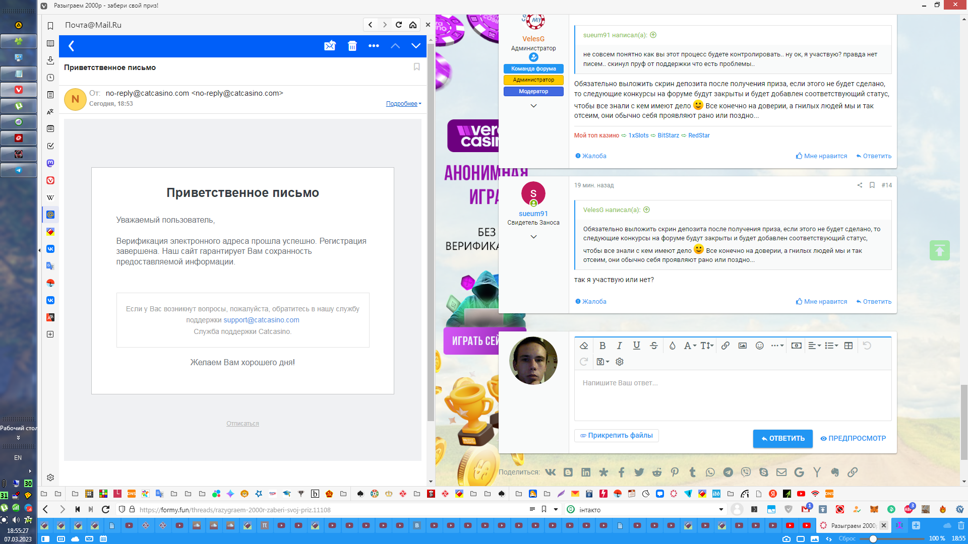 - прикрепляем скрин письма, где видим, что регистрация была после опубликования темы