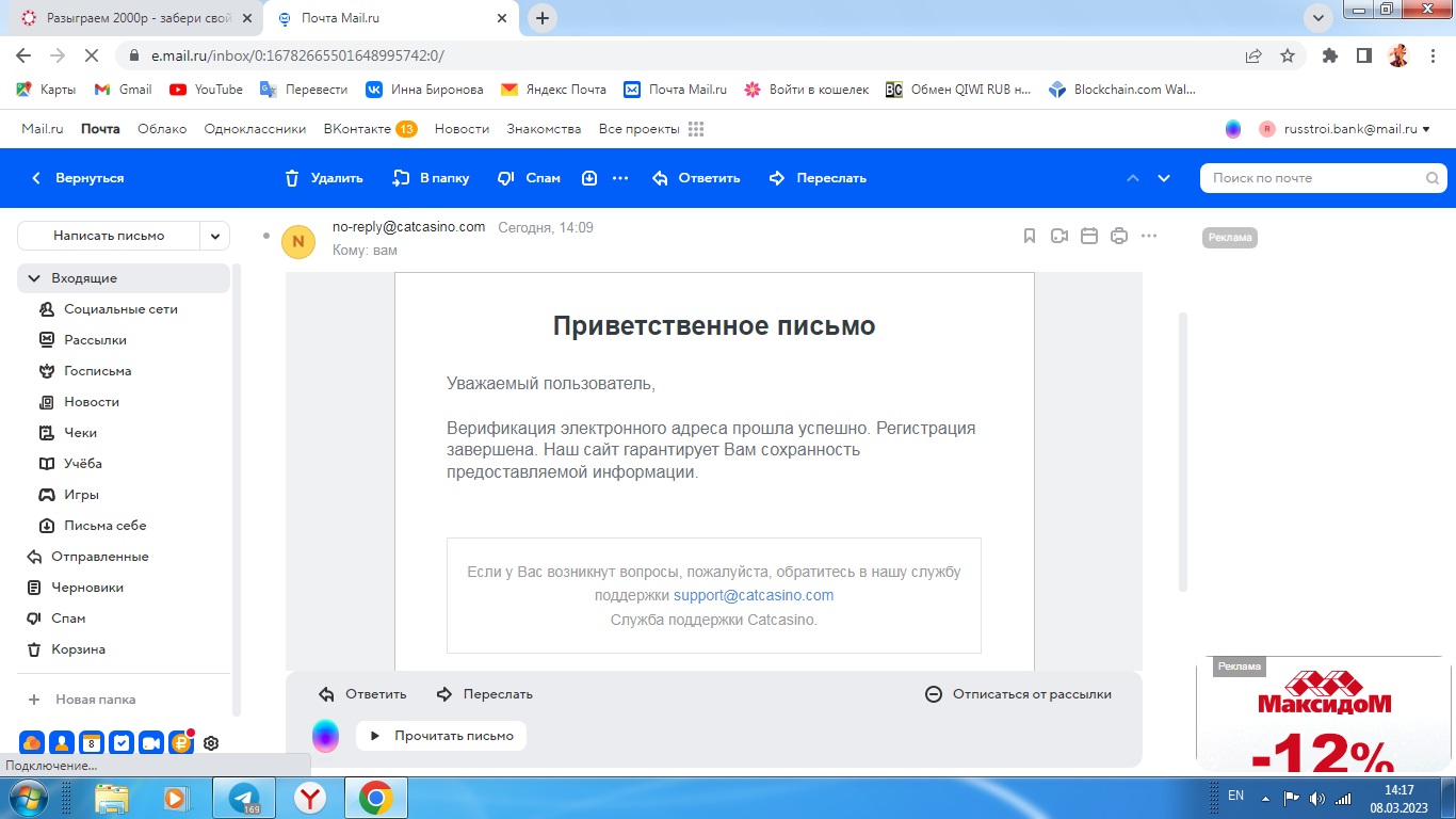 мне ничего не пришло кроме письма с восстановлением пароля, могу его скинуть, но откуда вы знаете, может я от старого акка восстанавливаю)