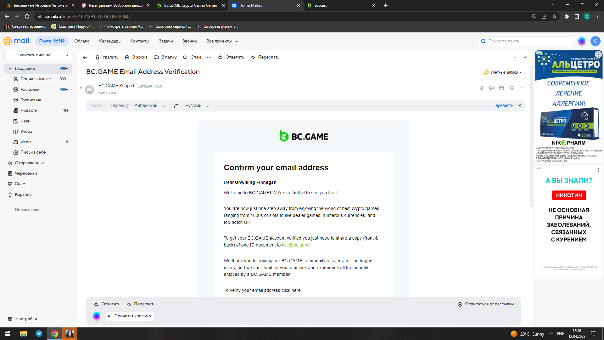 - пишем свой User Id в казино (можно найти в профиле в таком виде User Id: 12368452)