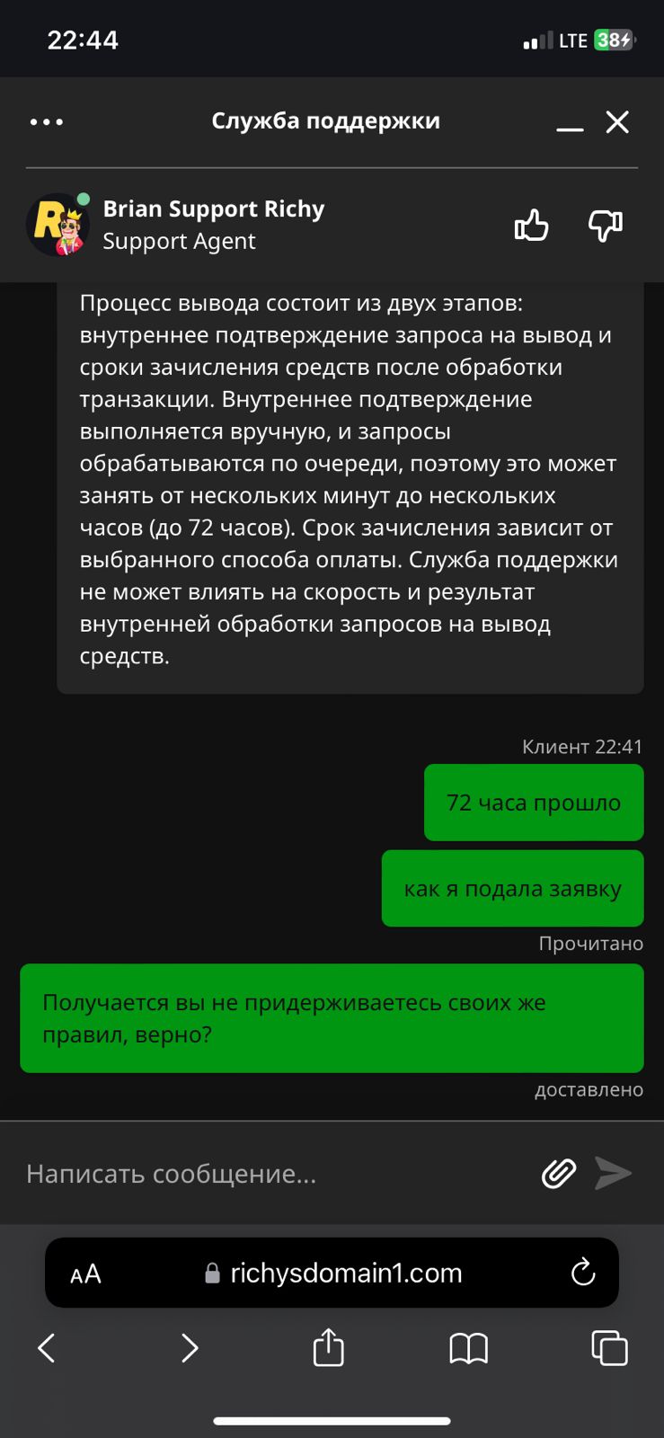 2. Вывод произошел спустя 5 дней. Хотя них же в правилах не более 72часов