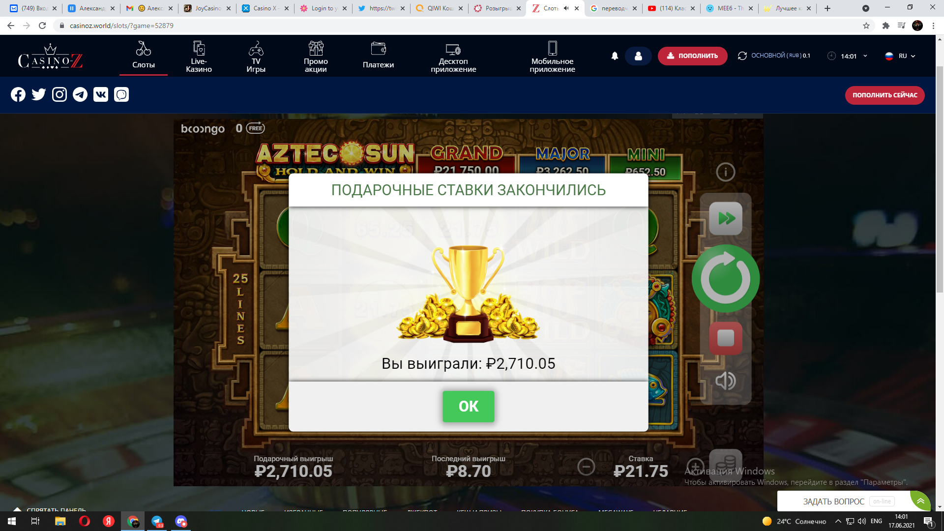 активировать код и выложить финальную сумму в этой теме с айди казино.