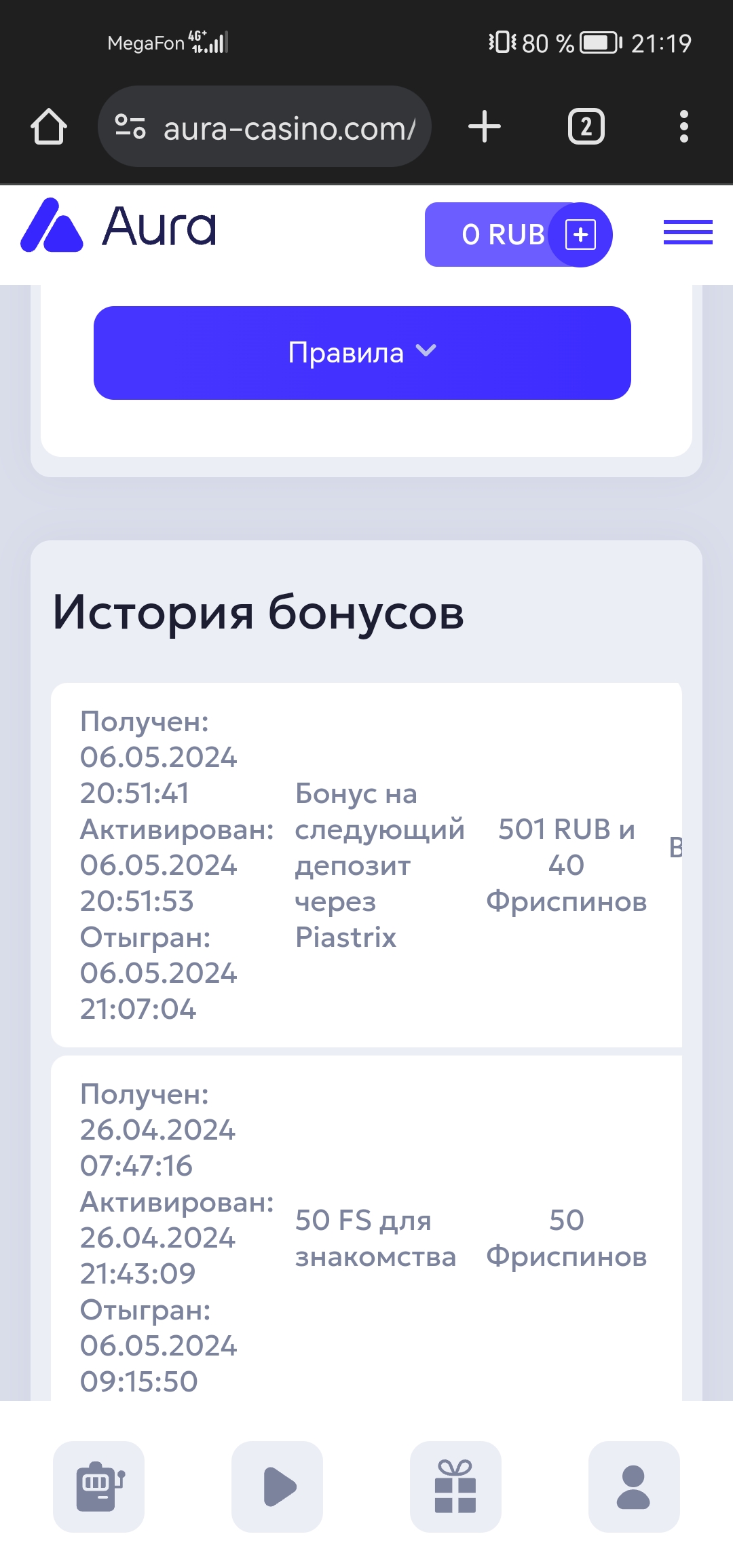 Помимо того что за Розыгрыш не начислили, попробовал 500р положил 40фс дал где выпало 100р, и 100%, как ни крутил в 0 все, в 20.52 положил, в 21.07 уже 0 баланс, выше 10р ставки не делал