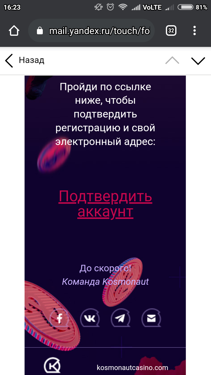Выкладываем скриншот письма которое придет для подтверждения регистрации - на скрине должна быть видна дата и время!