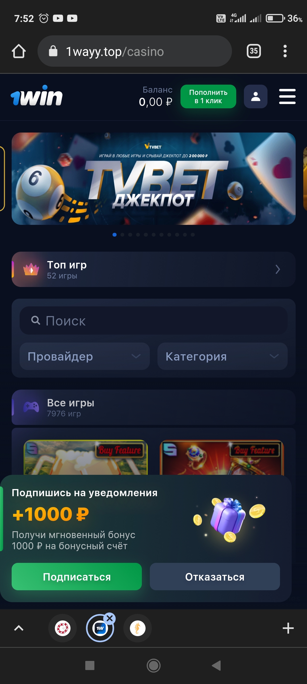 1000 рублей в казино Vodka bet