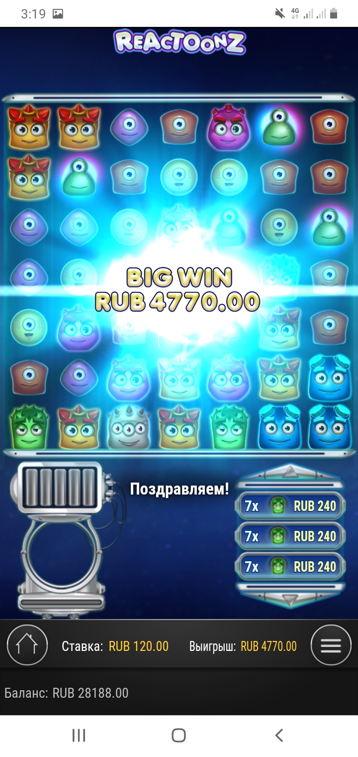 После заливов сижу без копейки в кармане уже который раз. Продаю монеты на 270 руб. DOA ставит 5 скатеров, ставка 4.5р икс 2500. Следом топаю в mega moolah, где ещё орлы такие розовые за скатеров. По 25р ловлю 5 скатеров икс 900. Играл всю ночь, баланс падал до 16к, подымался до 50к+, поставил на вывод 27к.