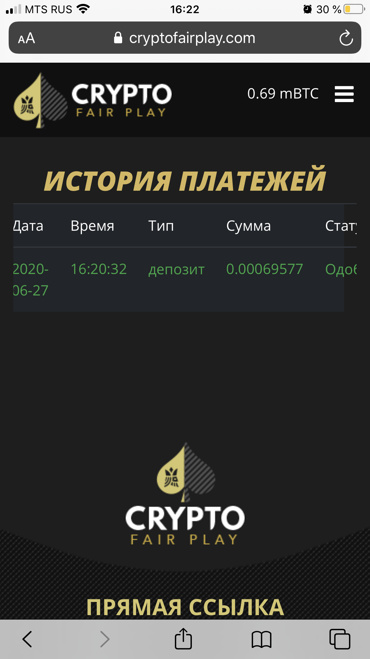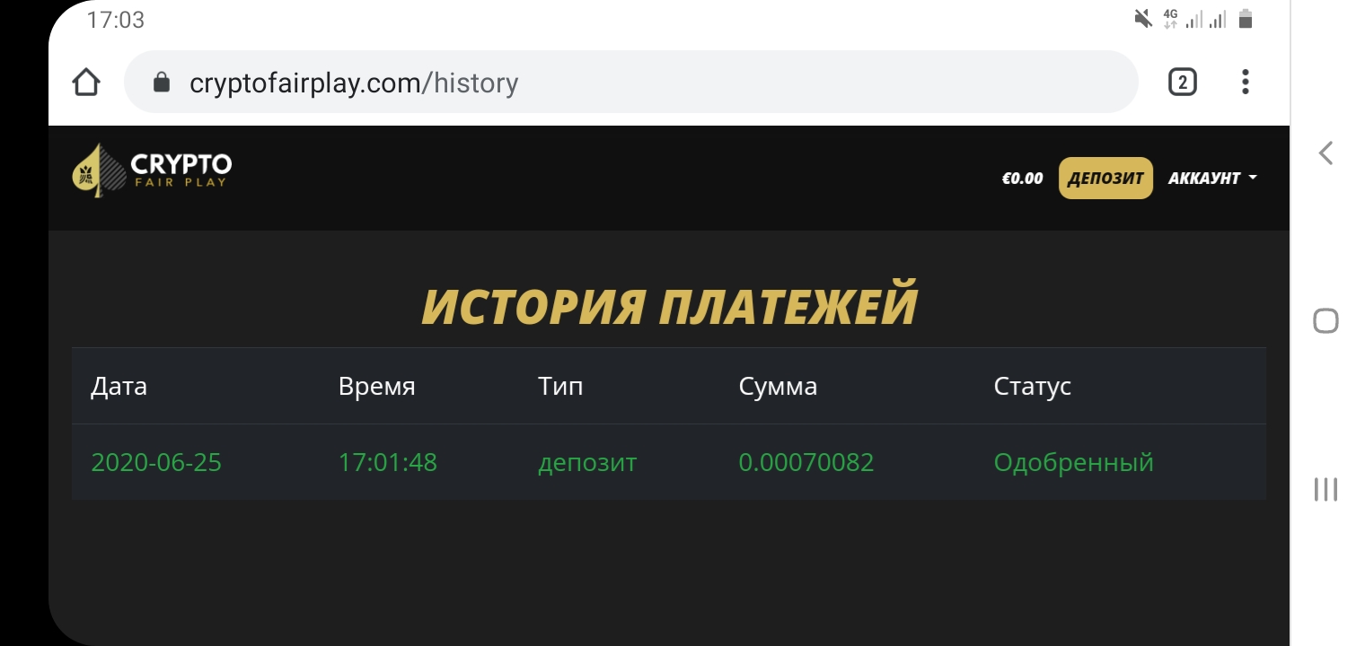 Да вообще это находка для игрока,депаешь в валюте своей выводишь криптой и пусть лежит на кошельке)) биток растет ты богатеешь))Спасибо форуму и Тамаре! Удачно я успел на последок принять участие, приз получен! Депнул 500р, на баланс почему-то упало в битках, хотя счет открывал, выбиралпри реге в евро, хз может деноминация валют есть ща проверю и за тестю казяву.