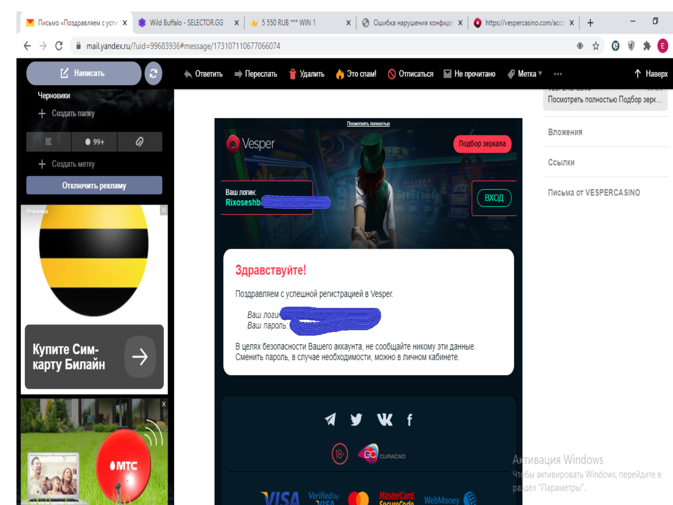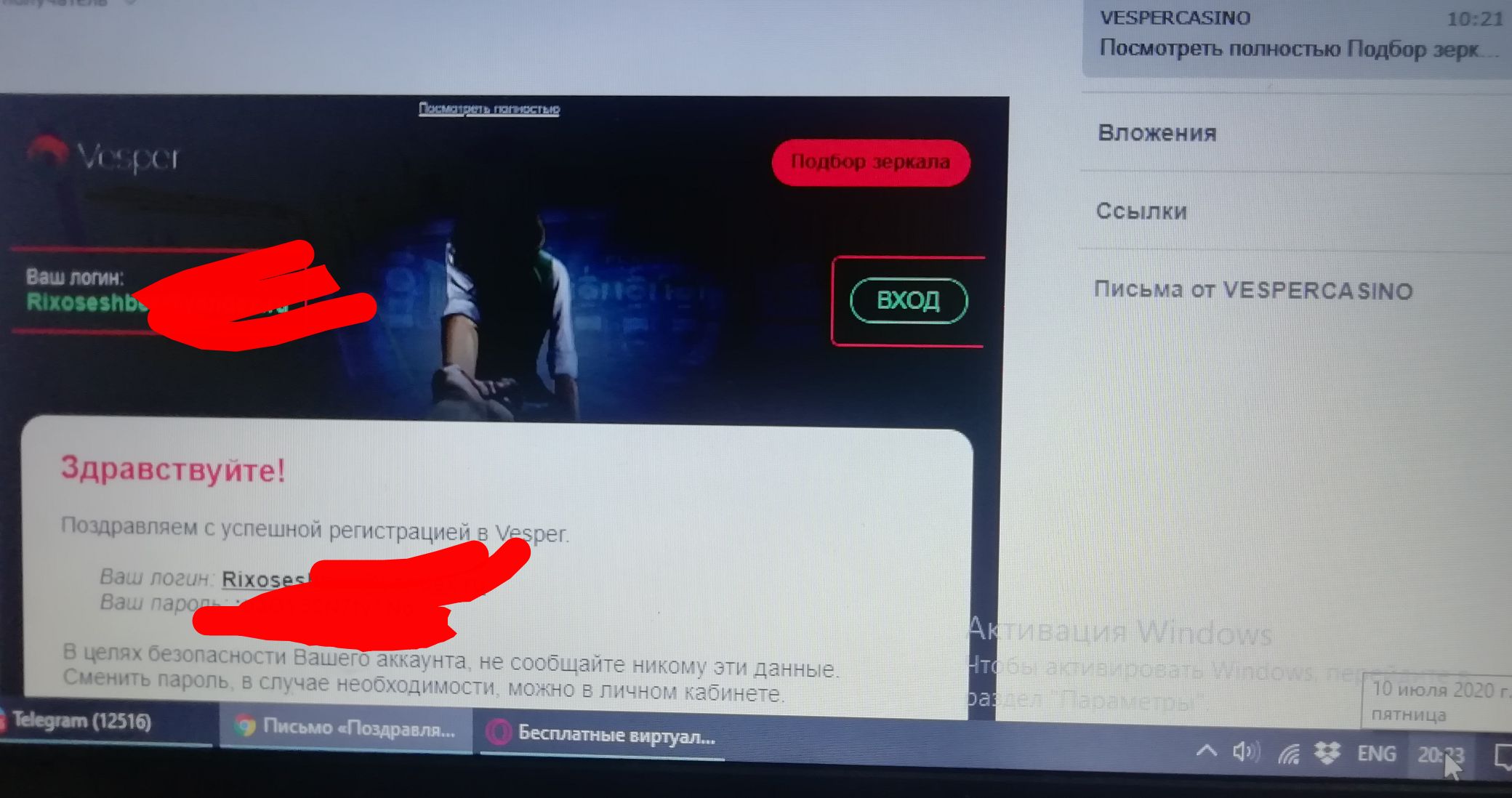 Конкурс Розыгрыш 3000р + 10 промокодов в Vesper Casino