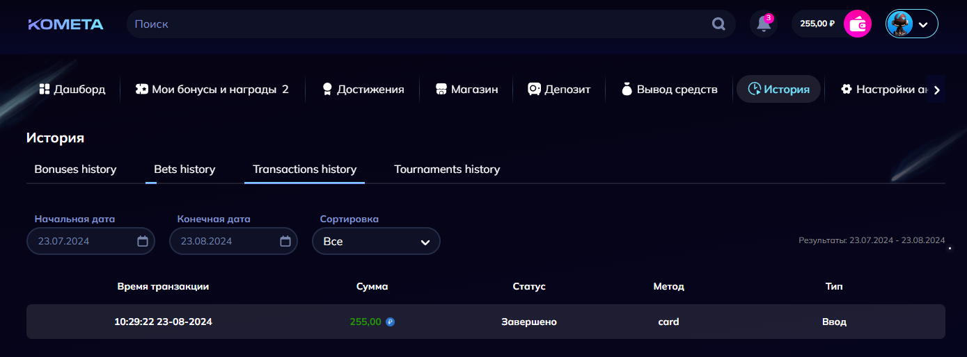 Конкурс Розыгрыш 500$ в новом казино Комета