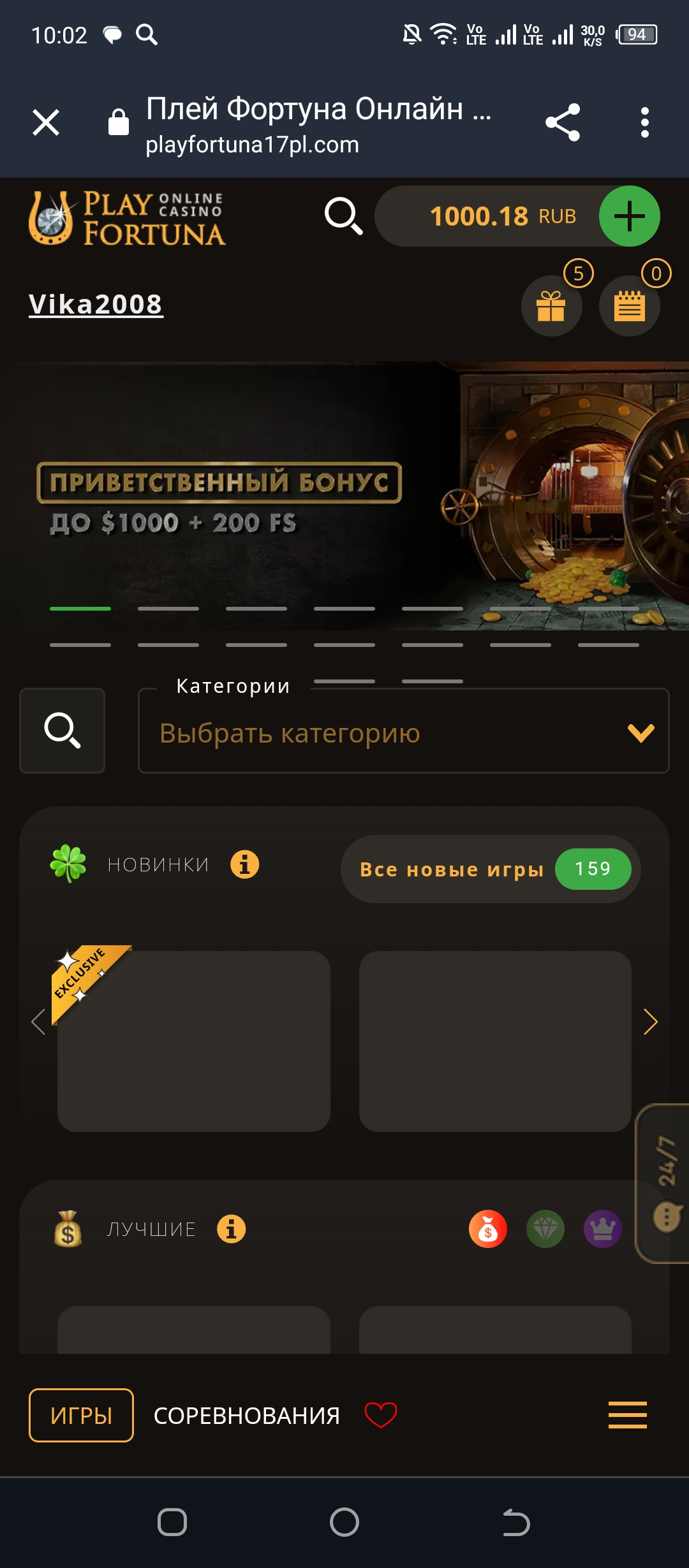 1000 рублей в казино Vodka bet