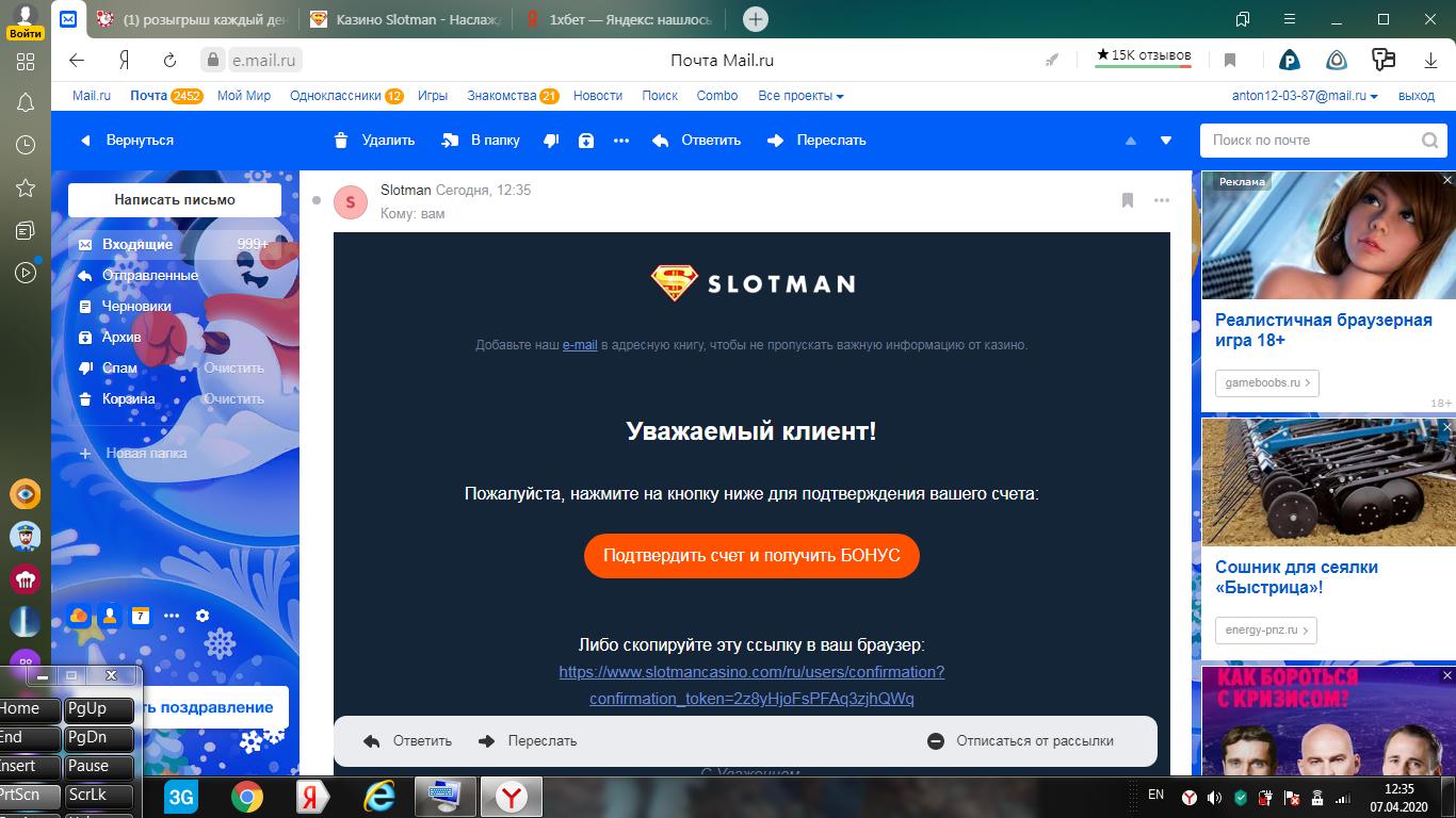 safon3 Модератор Команда форума Модератор 30 Ноя 2015 16,545 118 Credits ¢108 7 Апр 2020 #24 svetik написал(а): Посмотреть вложение 87774 Нажмите для раскрытия... Скрин подтверждении имейла выложи