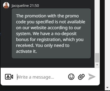 она мне дала какой то стандартный промокод как я понял с фриспинами. мои попытки объяснить что это мой персональный промокод не увенчались успехом