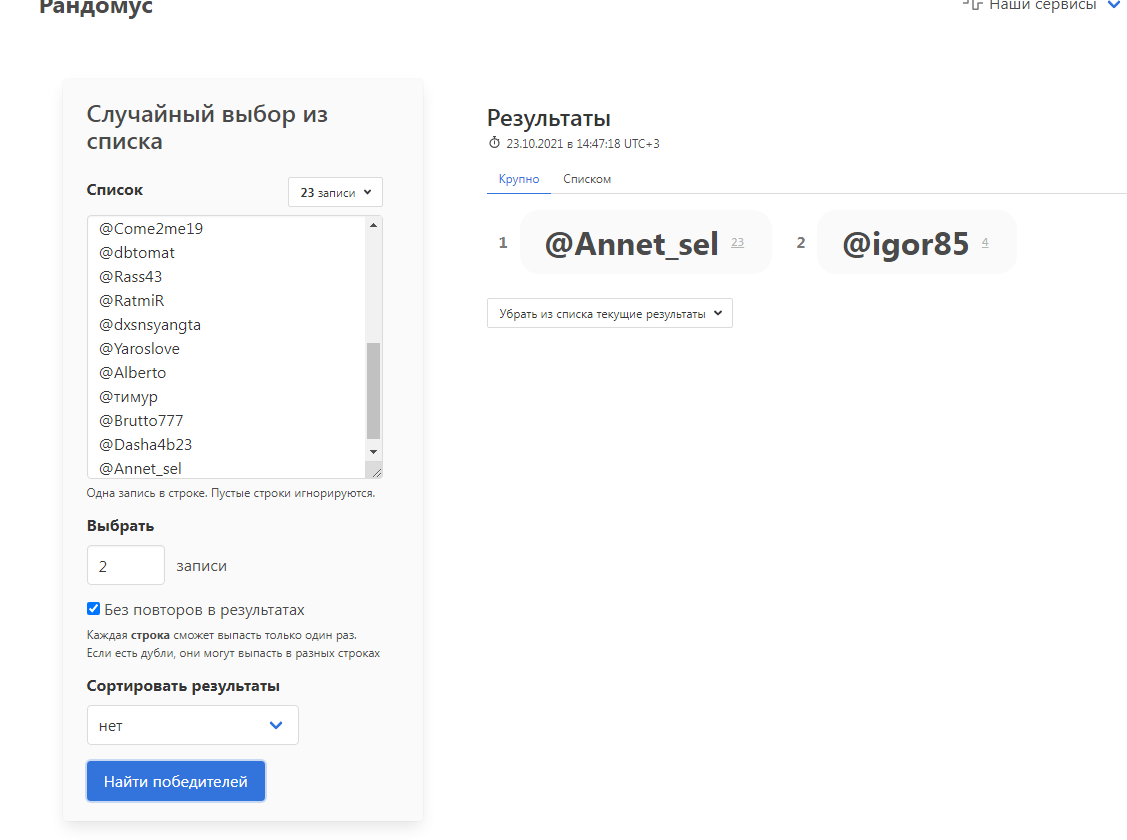 участники сегодняшнего розыгрыша!