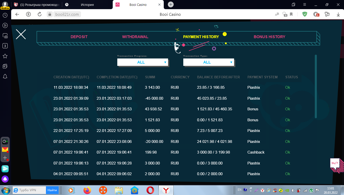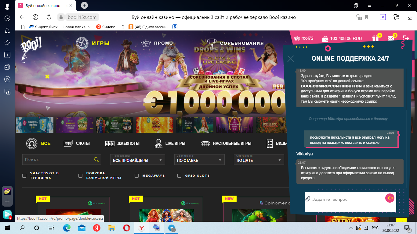 VelesG Администратор Команда форума Администратор 13 Май 2017 35,234 119 t.me Credits ¢226,325 20 Мар 2022 #23 sss22 написал(а): участвую вложение Нажмите для раскрытия... Где ты был раньше Уже другие условия - Но у нас осталось еще 2 промокода, которые получат первые 2 игрока, которые выложат в этой теме скрины наличия любого депозита в КАЗИНО BOOI начиная с сегодняшнего дня, с 20 марта! Один промокод в одни руки!