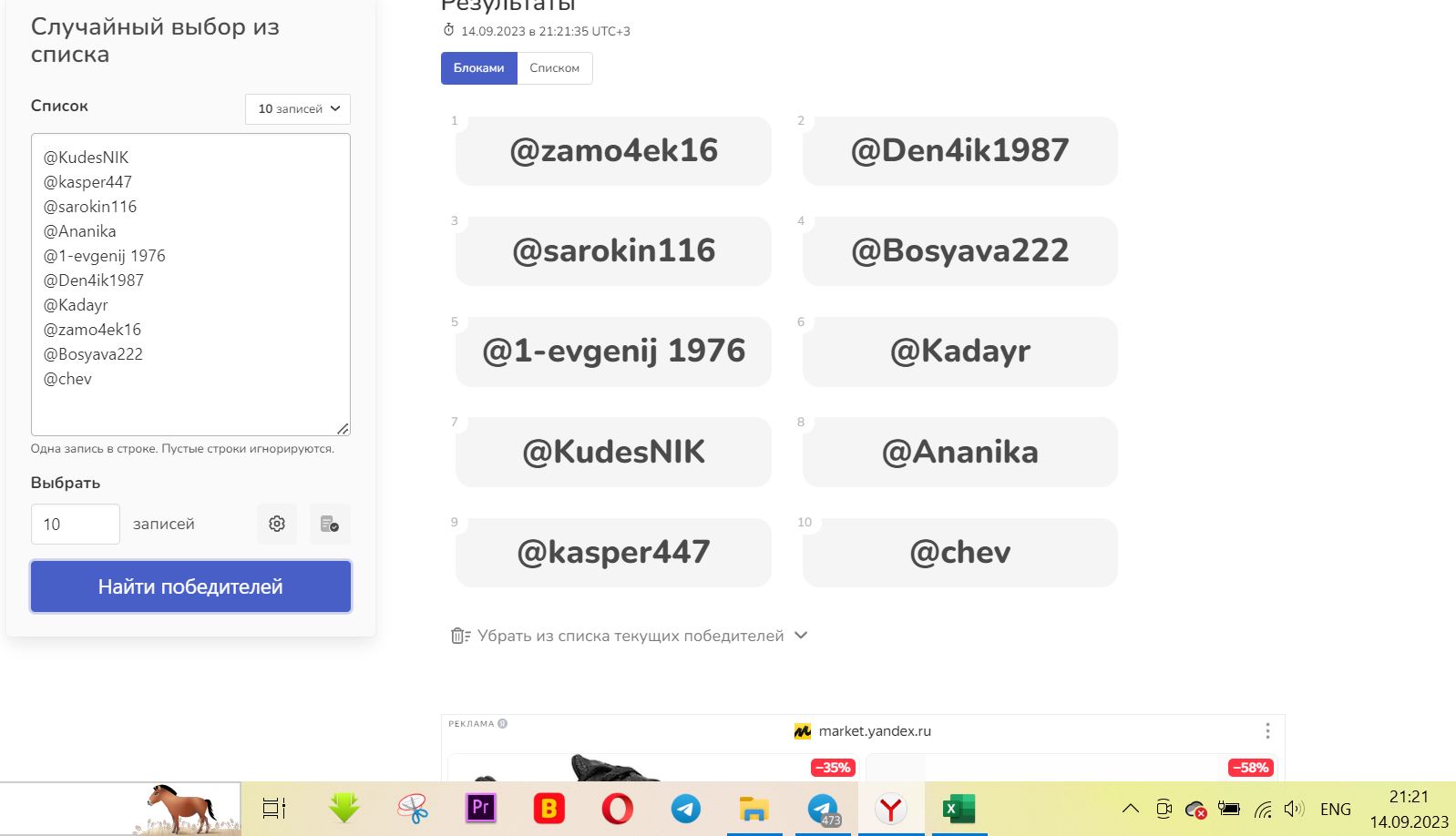 Рандом проведем 14 сентября.