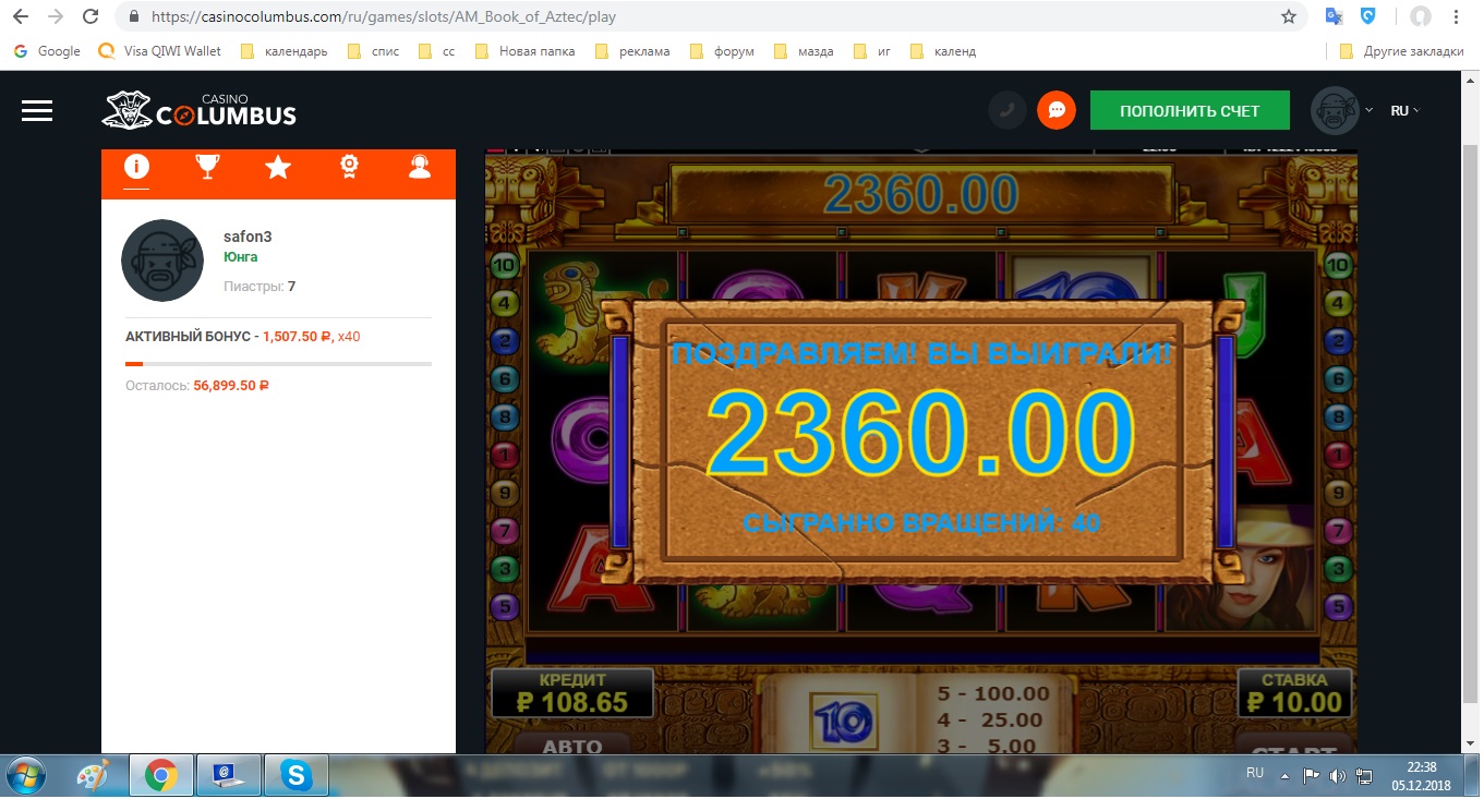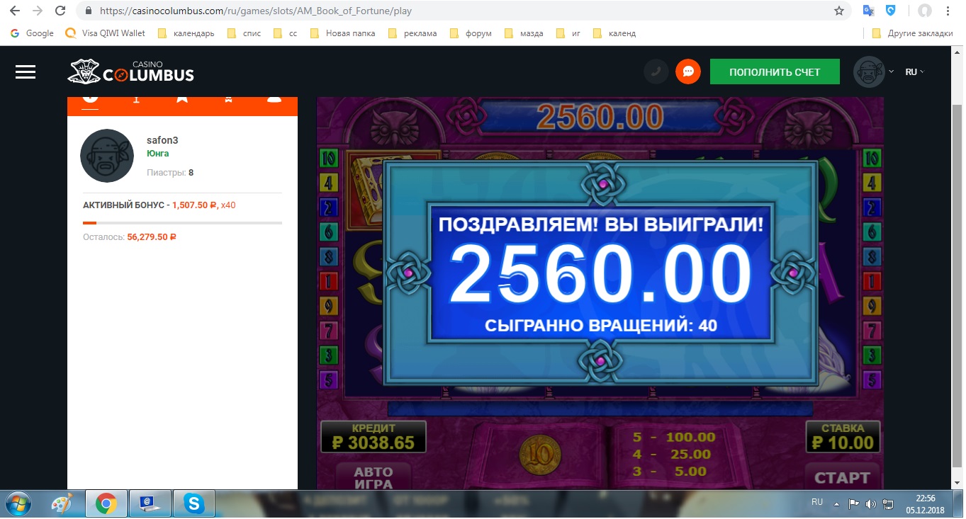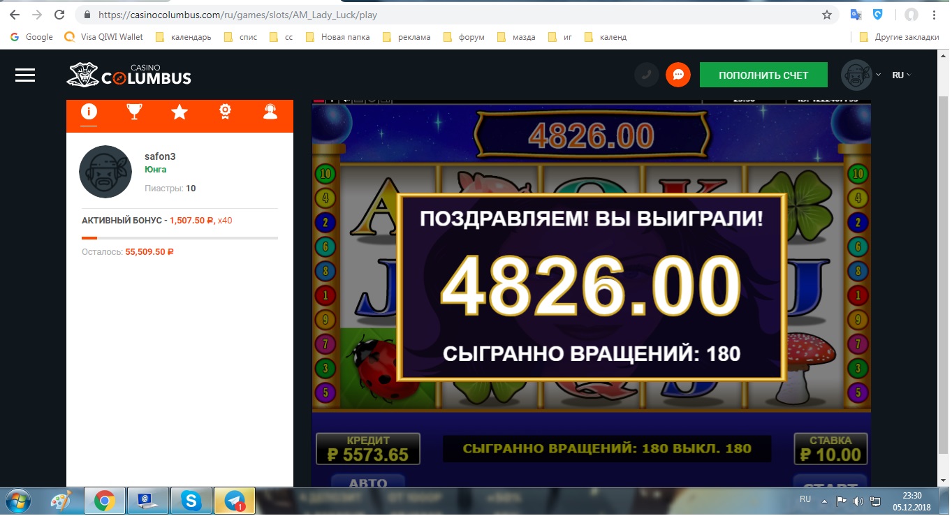 Ну что тут сказать Саня))) фартовый значит ты,раз с небольшого банкролла такое умножение словил)))серега участвую не на нашем форуме и от колумбуса там такие же кода и такой же конкурс но ставка 10р мин ,словил почти х 500 ,но тоже оставалось 100р