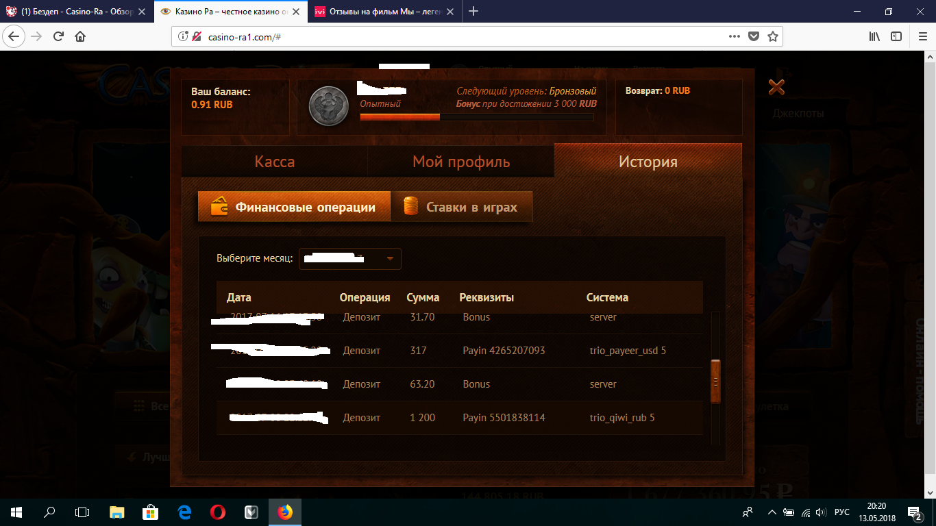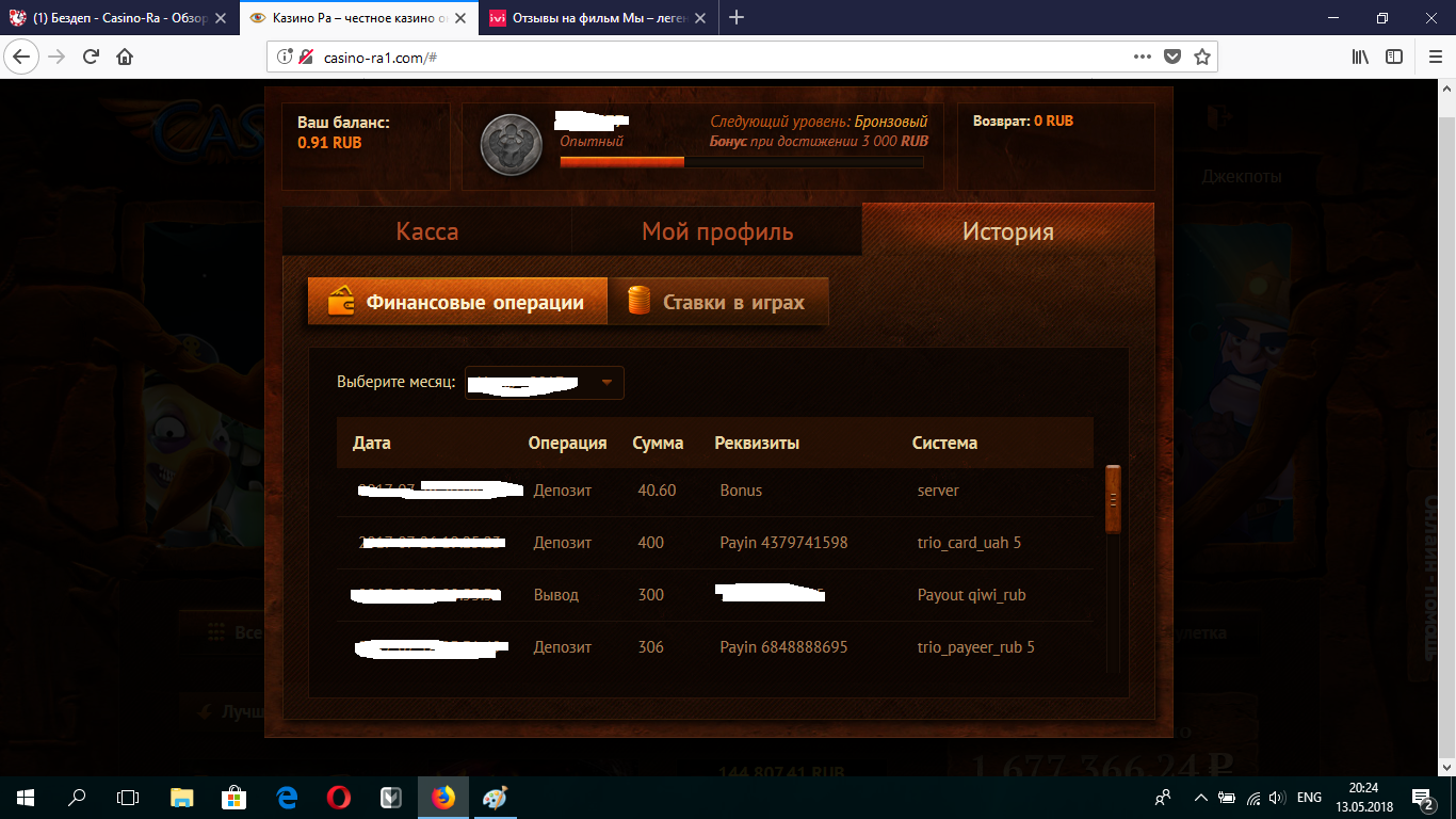Итог за полтора года депов 86731р выводов на сумму 11700р дальше решайте сами))))))))) к примеру в кристал слоте (тоже скрипт,но там админ человек с большой буквы) депов 155100грн выводов 422000грн ето не реклама ето пример моей игры,риобет депов 4049$ вывод 16032$)))))) разница ощютима))))))) и еще много казин откуда я в плюсе,но ра самое минусовое казино из моего списка