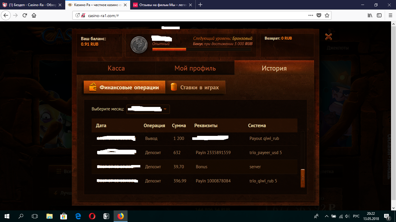 Бездеп Сasino-Ra - Обзор, отзывы игроков, бонусы