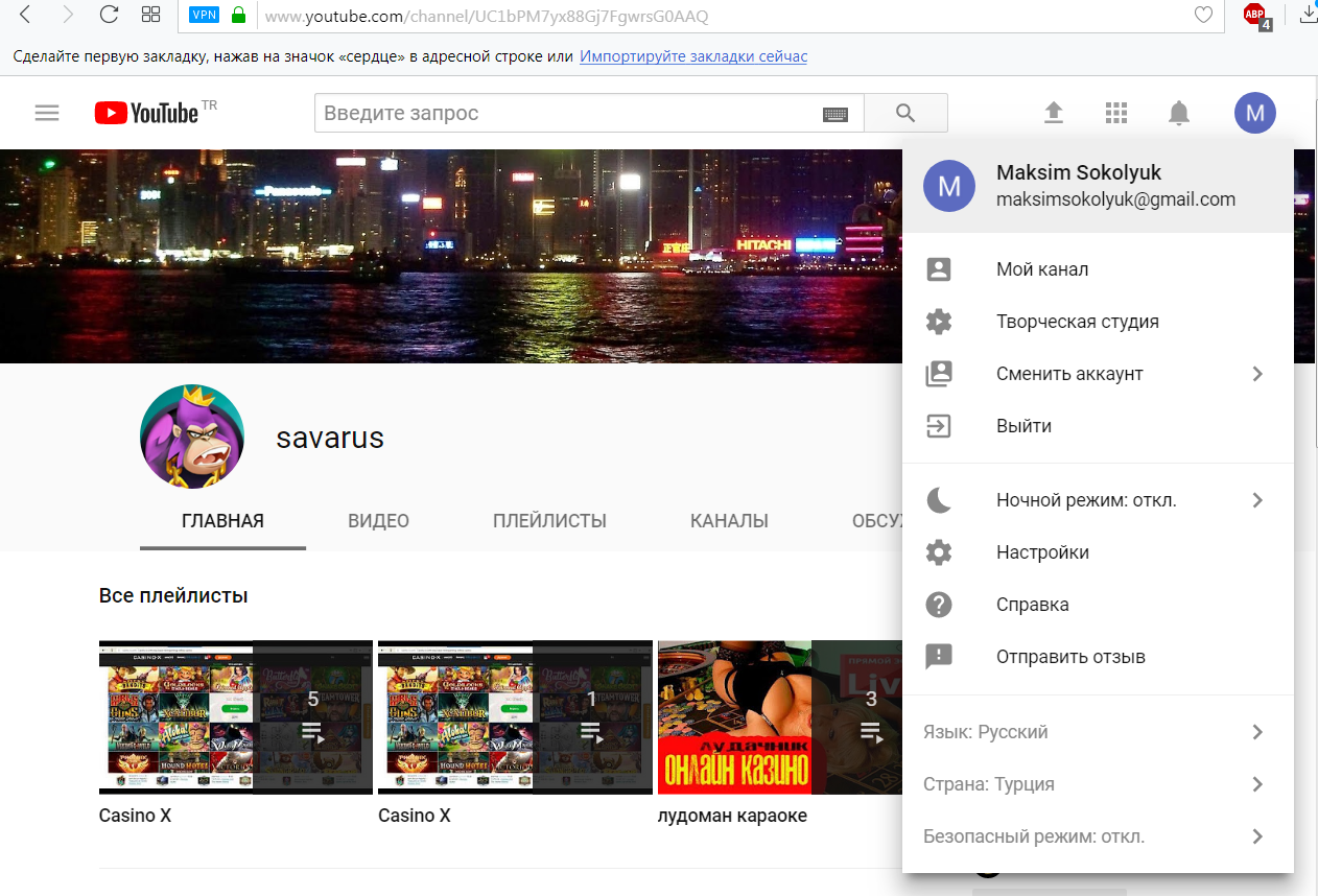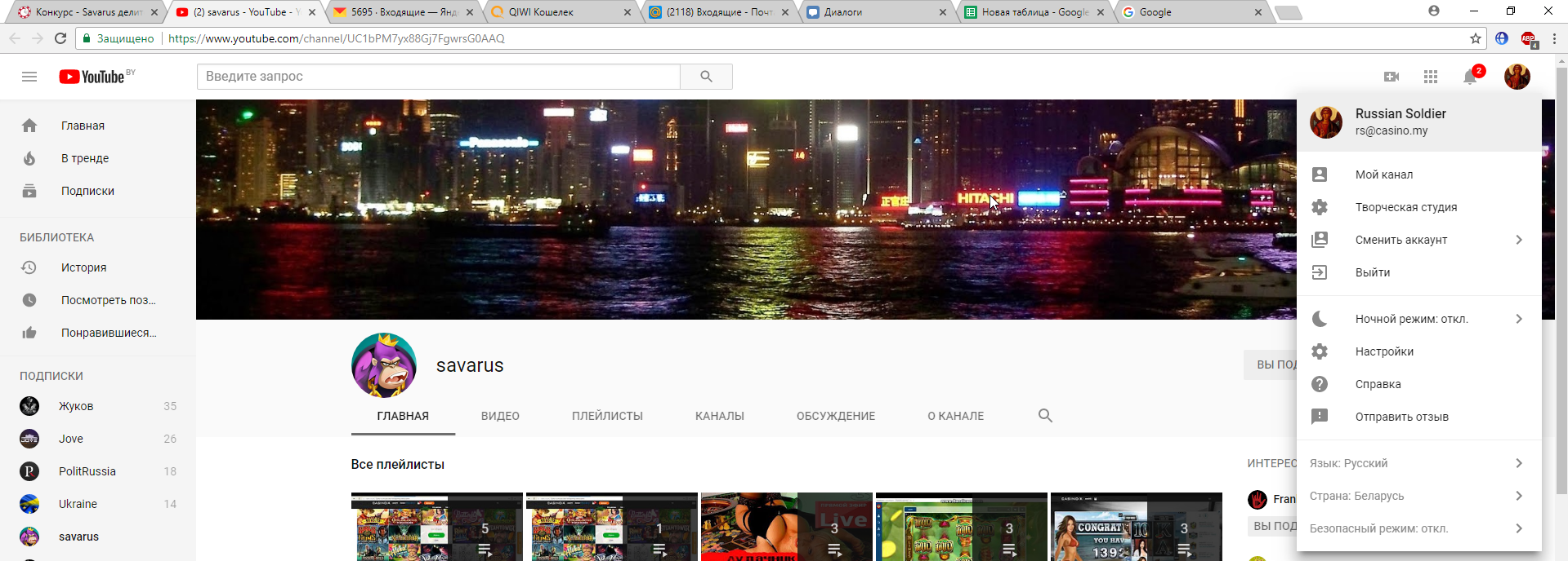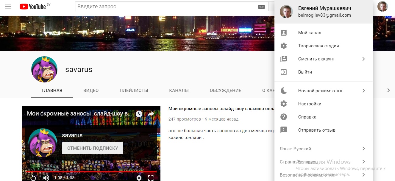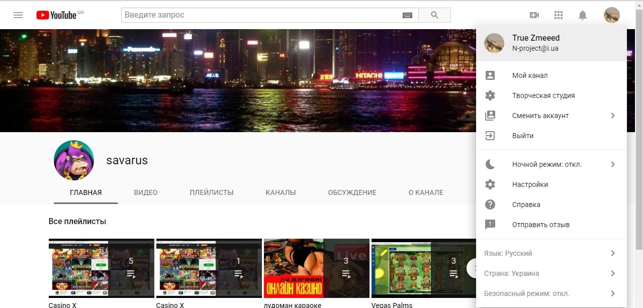 Логин на ютубе - spartack gagua