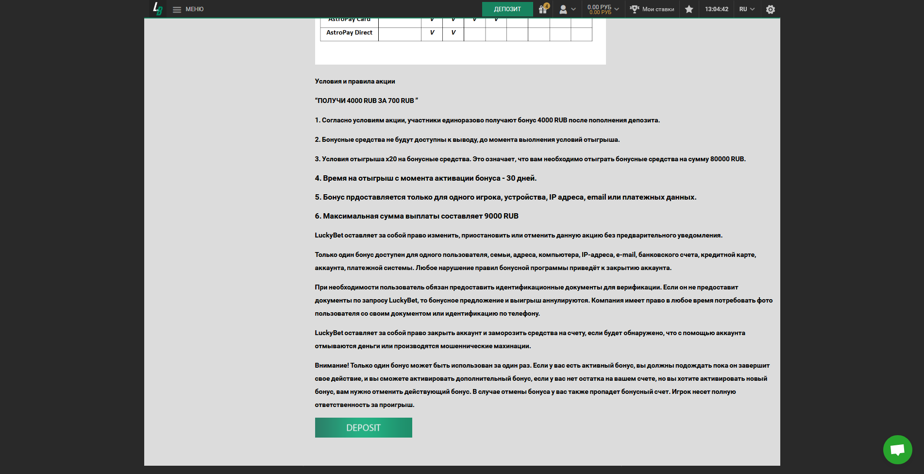 Горячая тема Сделай Депозит На 700 RUB получи 4000 RUB