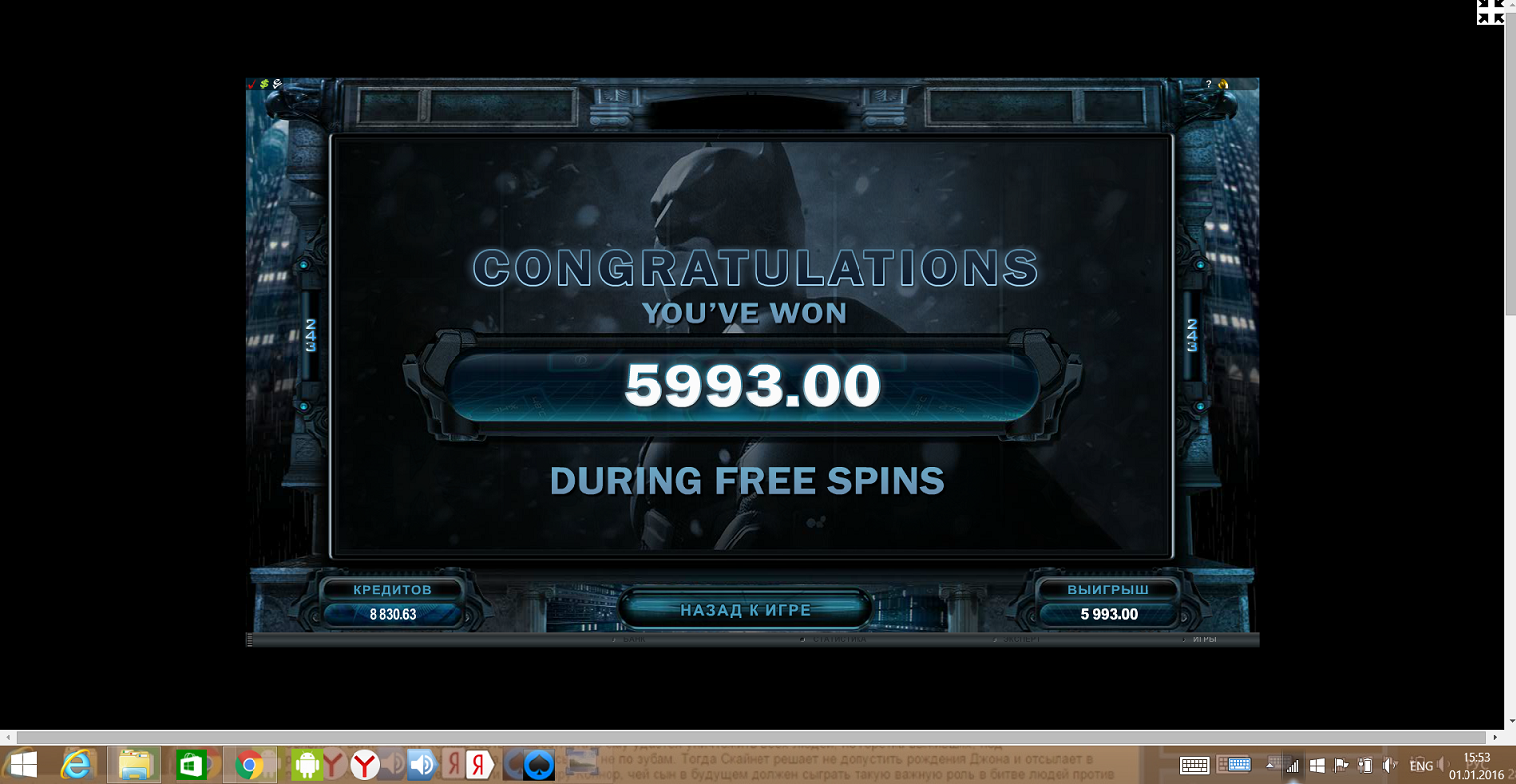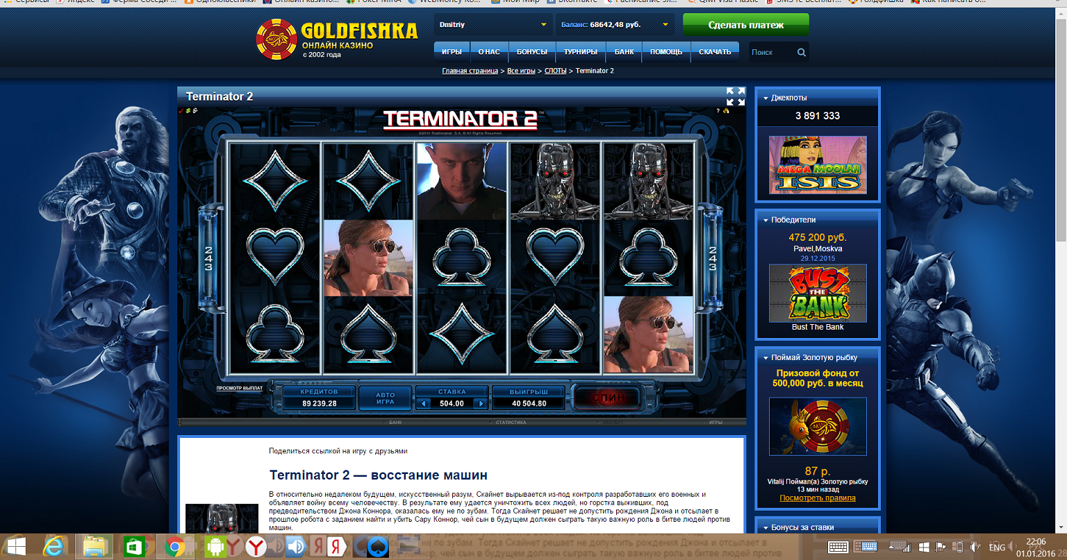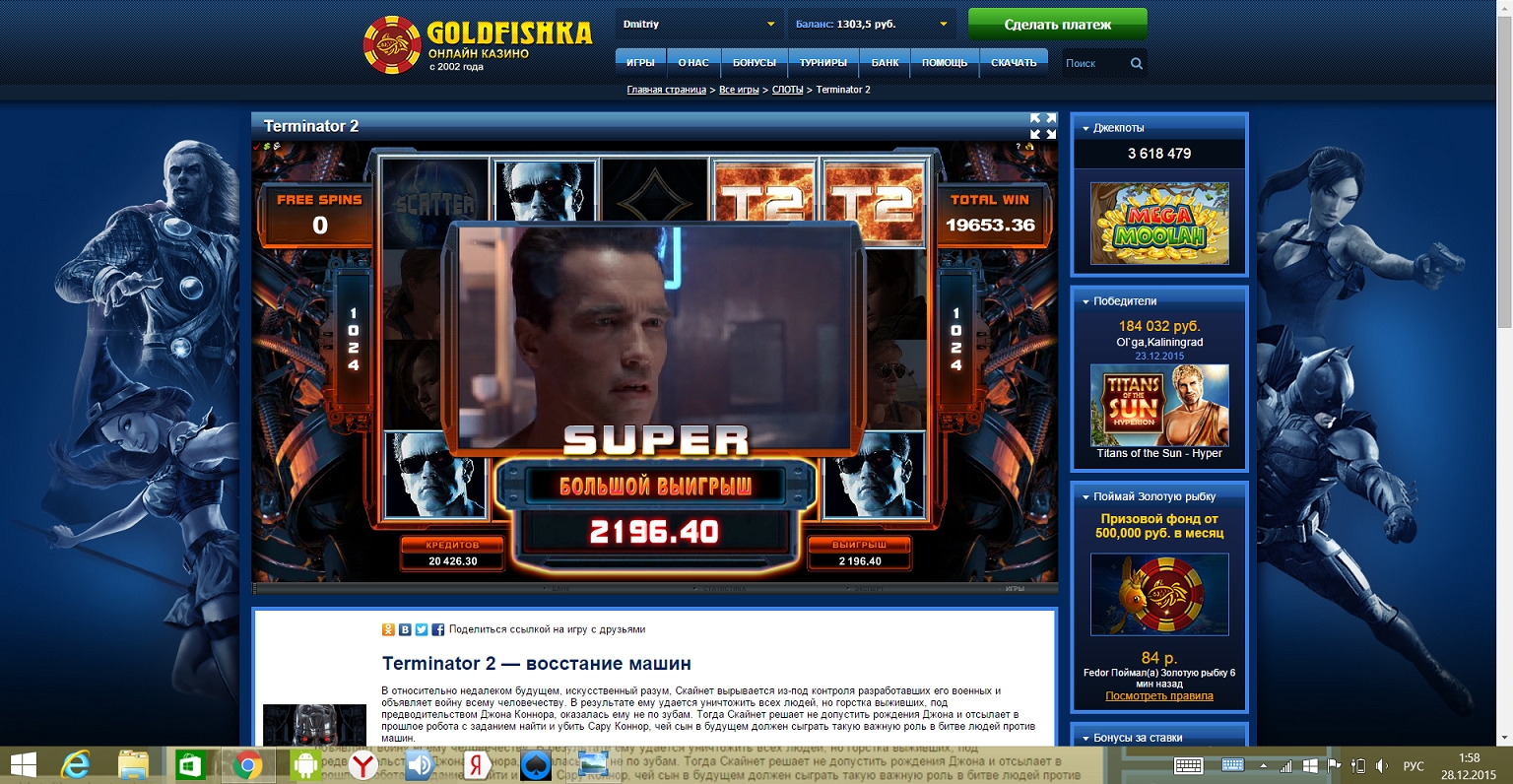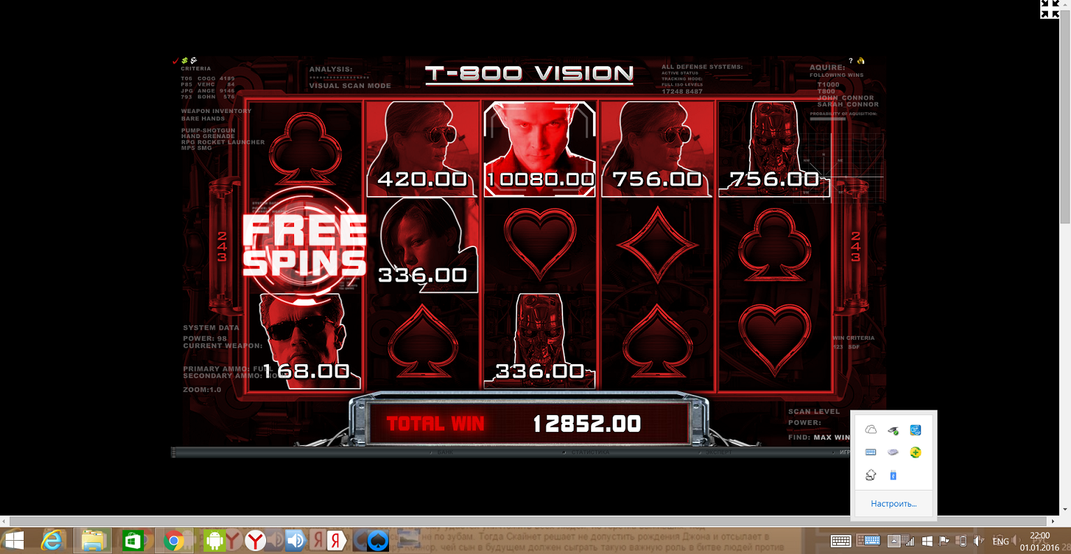 Деньги вывели вчера после этого деп в видеослотс 10 бачей сразу же secret of the stones дал призовую х300 по 0.25 на вывод 75 баксов и деп в казумо 10 евриков на вывод 46 евро. Вообщем получилось 175 евро вот теперь только ждать 5 дней когда со скрилла на карту придут а так тоже вроде ничего НГ начался. P/S Так же забанил иксы еще бы с ГФ завязать ну что то мертвая она уже 3 дня