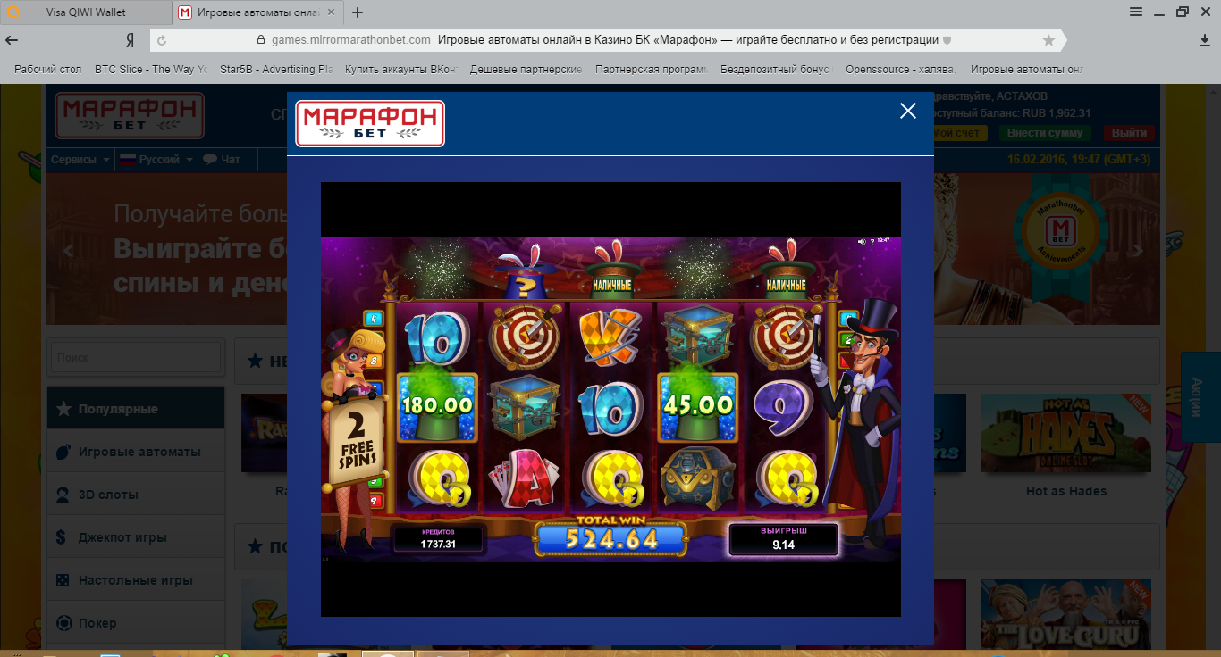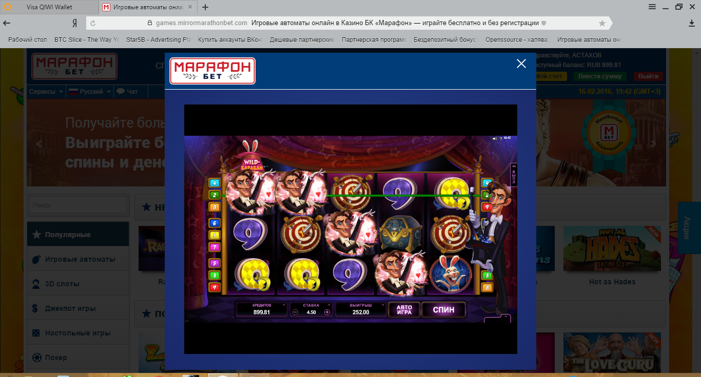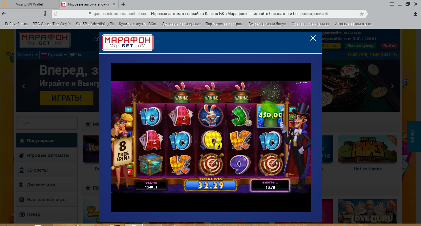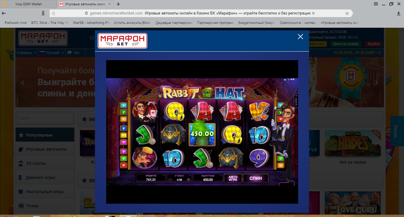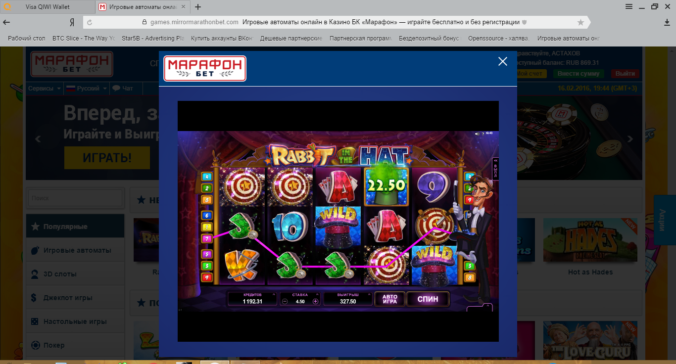 специально для лудобобки))))Сегодня закинул 300р на марафон,и сразу как обычно в кролика играть начал.Этот слот мне не изменяет