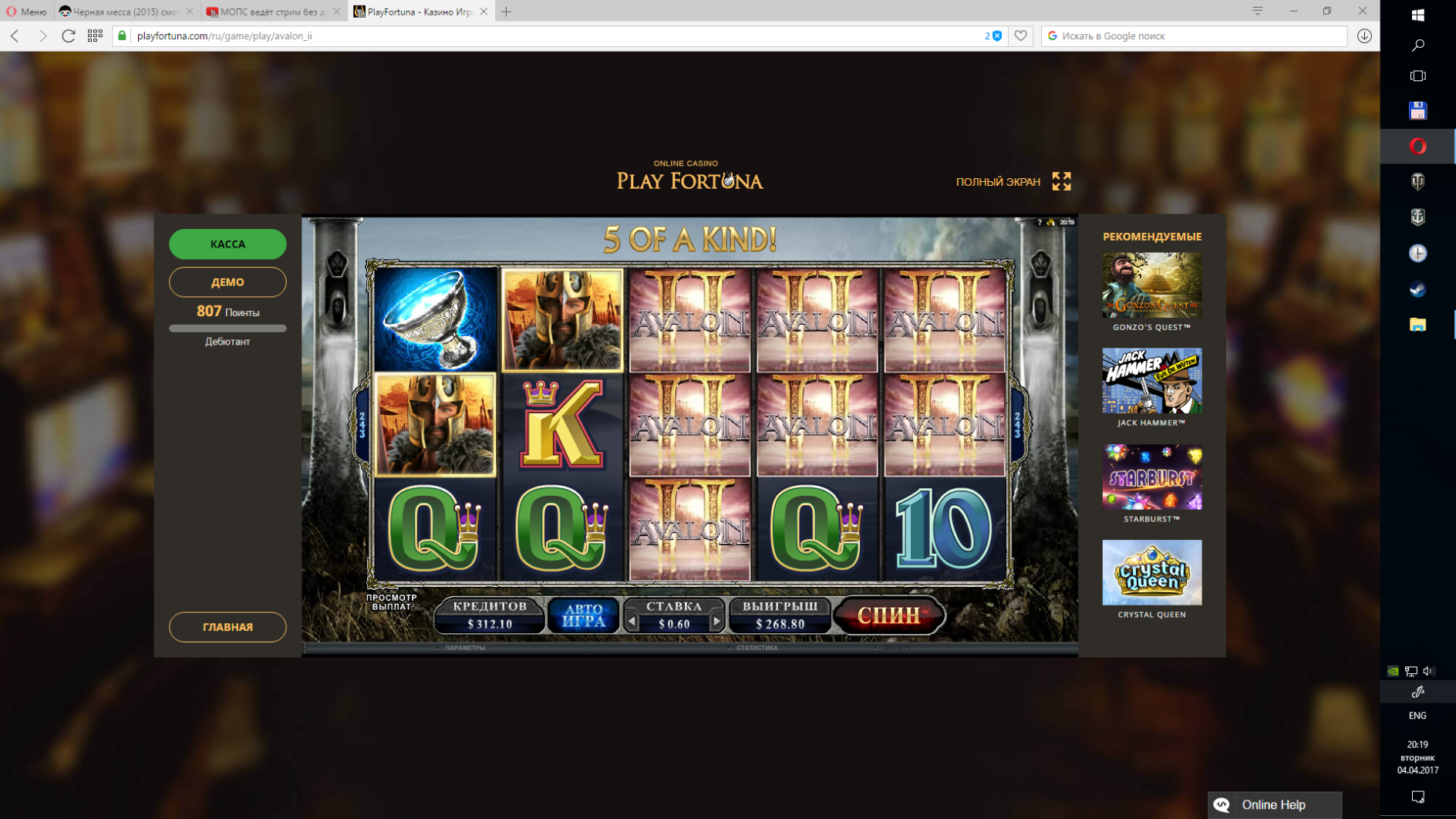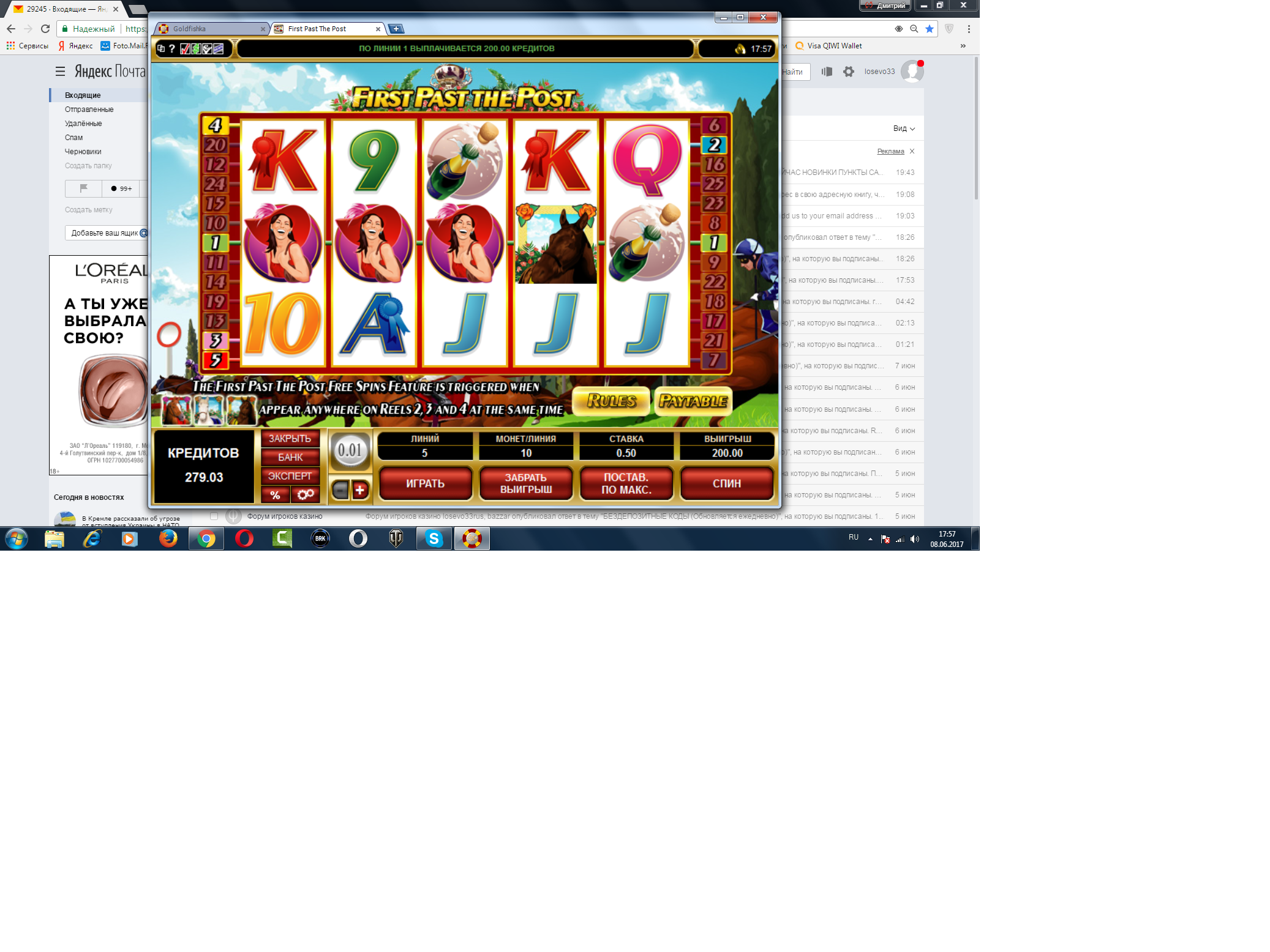 вообще тогда фартило почти целую неделю)))) в разных казиношках....выведено и потрачено было все с умом