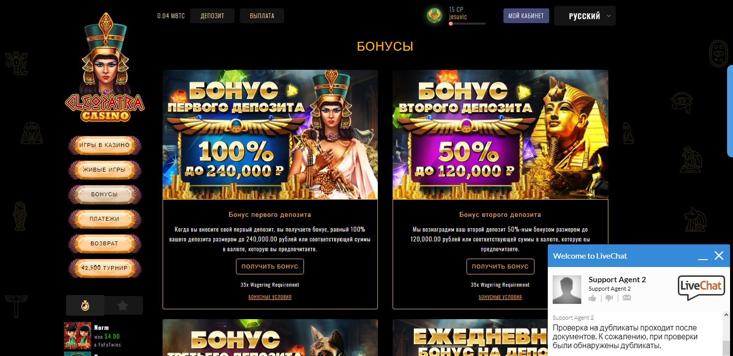 Бонус на депозит Сleopatra Casino: бонусы, акции, играть приветственный бонус 200% (piastrix)