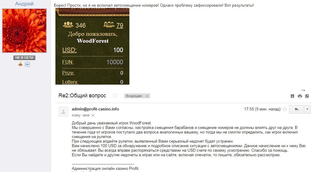 Сафон перестань гнуть свой бред- Я тебе говорю серьезно что они специально оставили 20 долларов мне на счету что бы конфисковать 100- ты понимаешь что это открытая наглость казино забирать выигрыши или нет и оставлять крошки игроку ? Это не пахнет наглым издевательством и неуважением к игроку ? Чего ты сейчас бред говродишь если со мной вся аудитория согласна и я кинул доказтельства ! Вот подними у них выше 100 долларов и убедишься в моей правоте сам они тебе подумают ту же историю - это пройденный уже вариант!