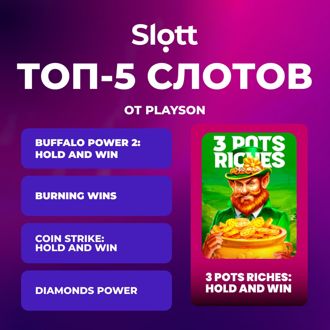 Открой для себя ТОП-5 слотов Playson Playson — это проверенный разработчик, который знает, как удивить даже самых искушённых игроков Скорее присоединяйся к игре с Playson РЕГИСТРАЦИЯ В SLOTTCASINO