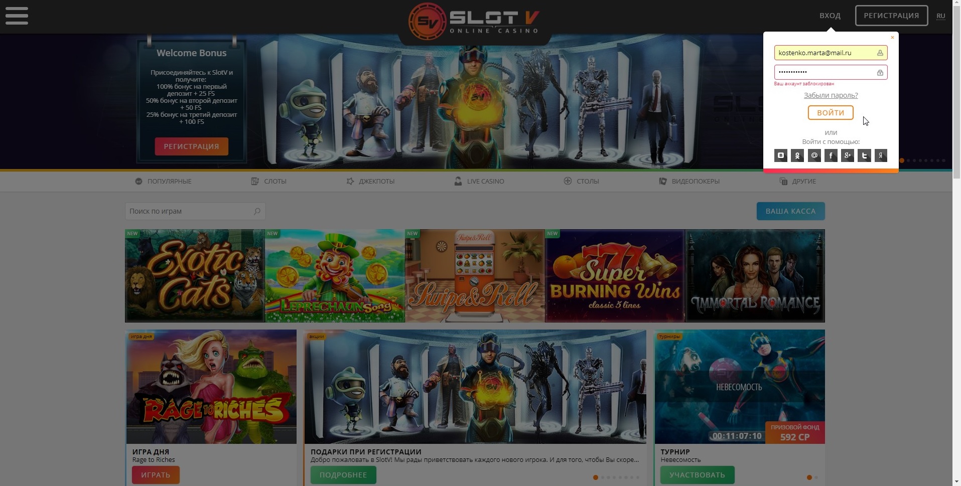 Бонус на депозит Slotv casino. Обзор и отзывы игроков о Slotv