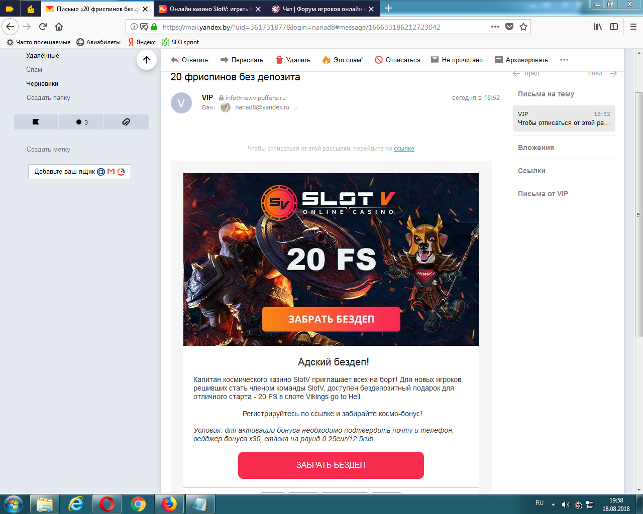 Юрий Гагарин, в адресате письма вы можете увидеть, что данная рассылка была отправлена не SlotV casino.