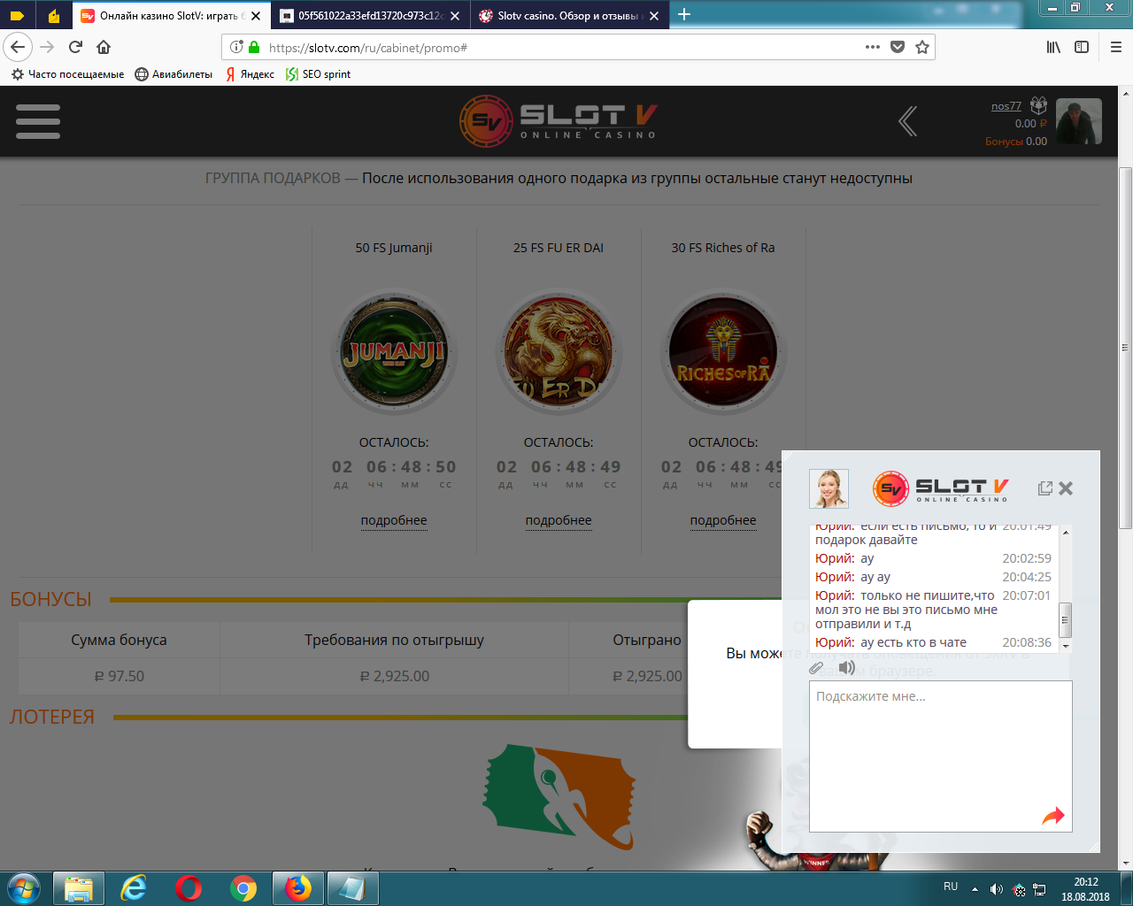Вообщем плюнул, на эти фартовые спины. Не был везучим и с ними- богатым не стану.А ждать по 15-20 мин ответа в лайф чате,такое себе удовольствие.