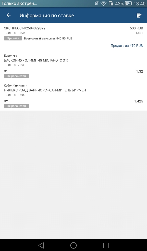 Меня потом не порвут за самопроизвольные ставки?)))Блин когда нужны ни кого нету на форуметы же в хоккее понимаешь.поставь пять ставок по 200 одинарами,чтобы не слиться.какая нибудь да зайдет,если за кефом не гнаться...на КХЛ.а у меня че то напряг с идеями.Евролига сегодня х...поймешь.только если на Басконию,да там кеф маленький,да и стоит она уже...)