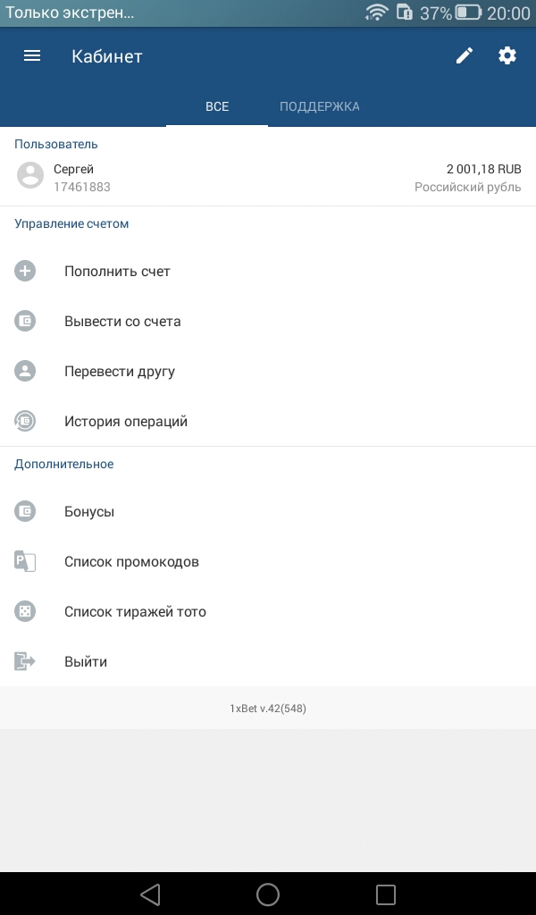 принял двушку.и даже бонус начислили.Антип,с тебя железобетонный тройной экспресс кеф не ниже 1.4 на ближайшие события.будем бонус отмывать..)Screenshot_2018-01-07-20-00-51.jpeg