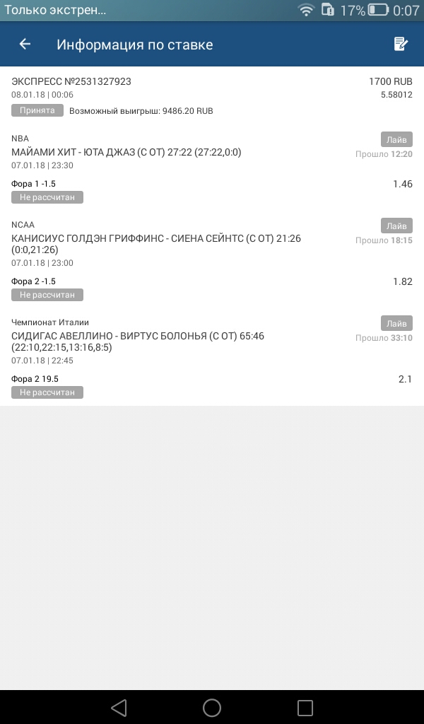 пока думаем,взял на себя смелость экспресс бонусный в лайве на 1700 поставить.5000 ещё на бонусном счёту осталось..Screenshot_2018-01-08-00-07-08.jpeg