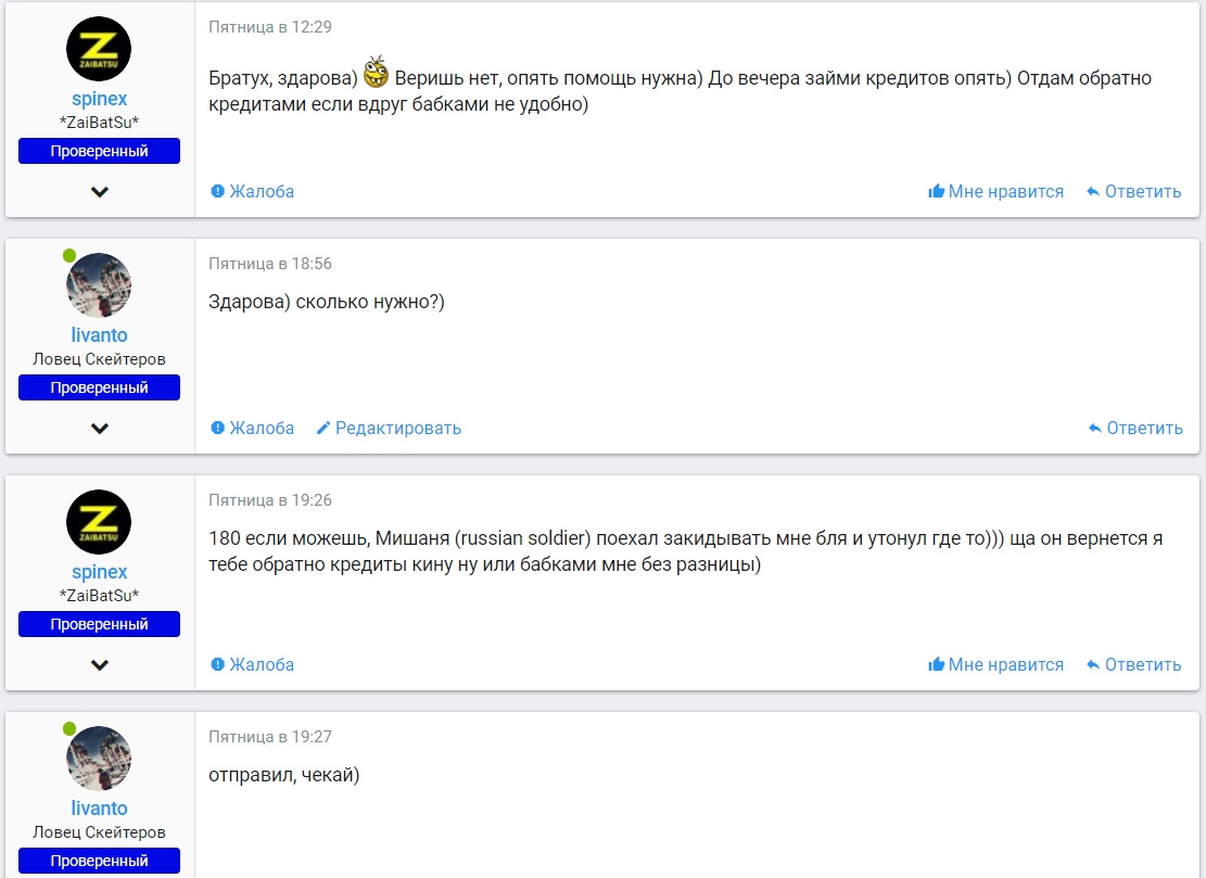 Я заметил, что есть люди (на своем уже тут опыте убедился, не буду указывать ники), которые берут в долг и как будто специально делают так, чтобы их забанили и не возвращать долг якобы по уважительной причине... У меня также тут было, дал в долг и такой шлак по темам должник писал, пока его не забанили... Уже никому не доверяю и сам не прошу, во избежания негативного отношения к человеку, к которому хорошо относился, и к себе...