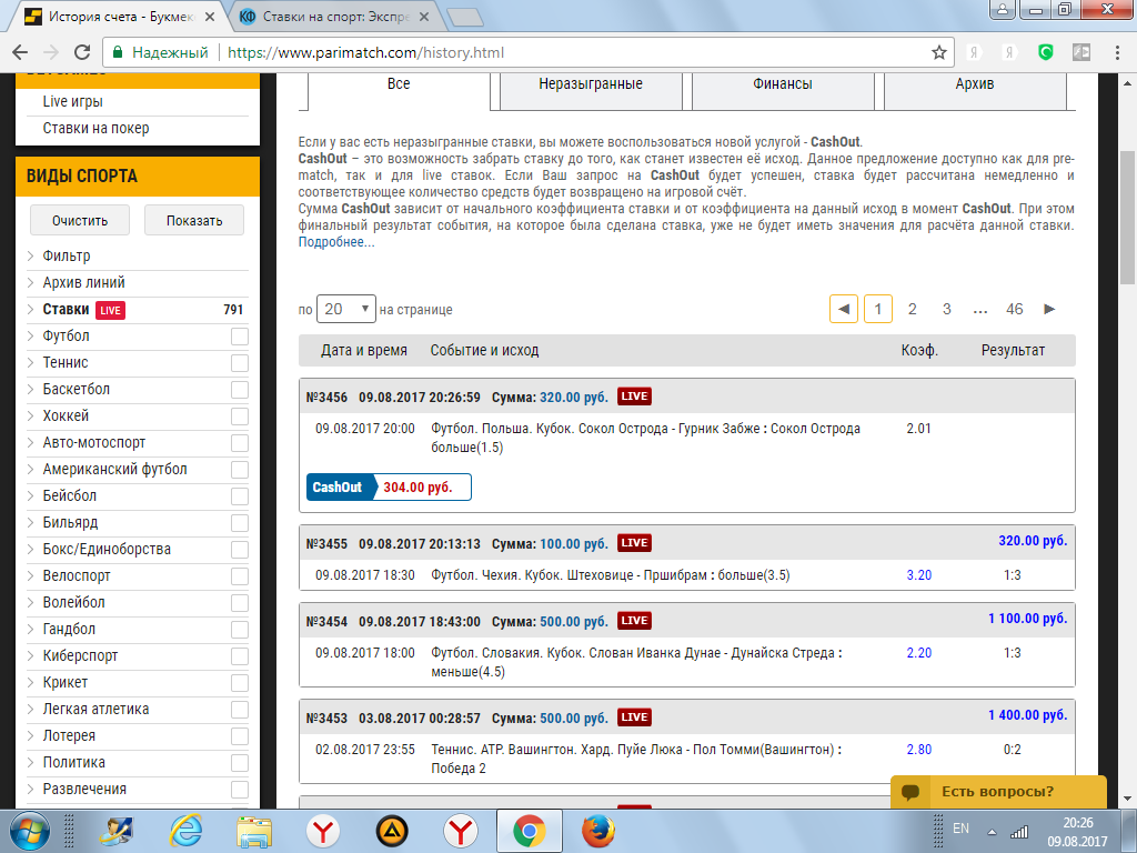 Ставки на спорт: Экспресс , Ординар , Лайв / Ставки на футбол и другие виды спорта.