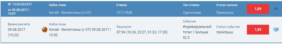 оставалось еще 2:30 минут счет 89-87 в пользу Фила, тотал индивидуальный тотал на Китай в это время дают 95.5(общий 191.5)