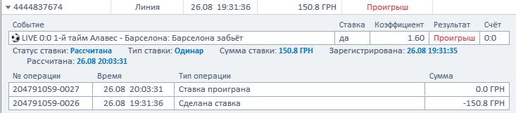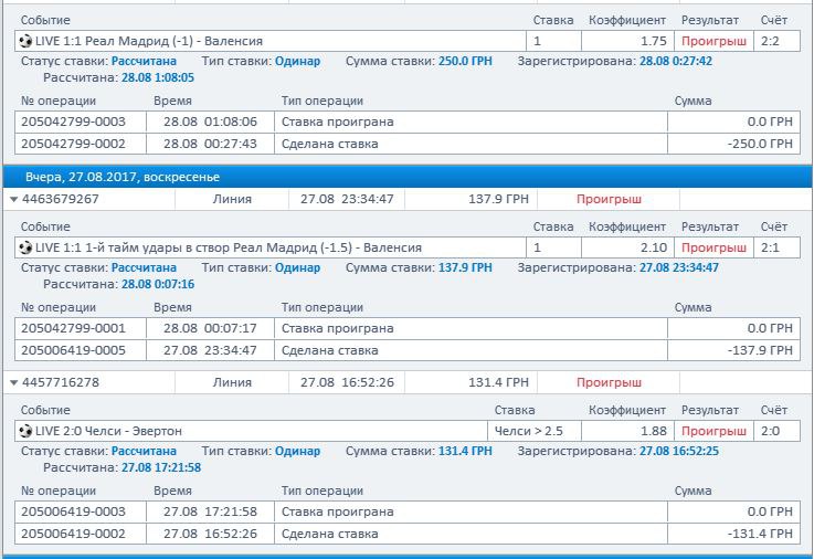 Немного скостил проигрыш ставкой на ничью.