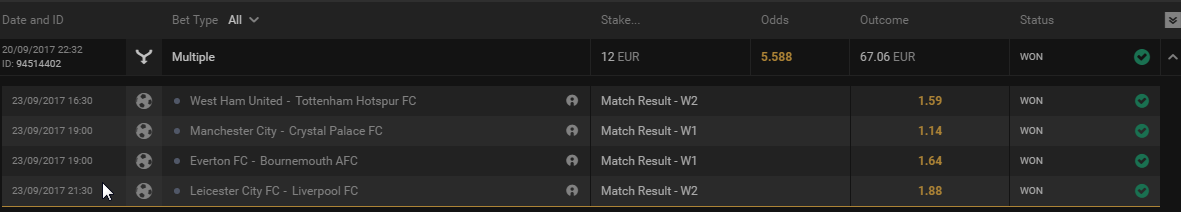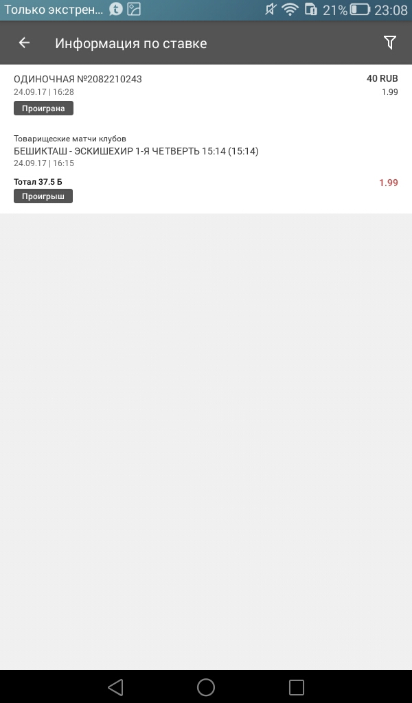 Зерекалась ворона говно не клювать(не ставить на футбол):tooth:, кароче тут такая тема у меня возникла с этими бонусами бездепозитными покерными там гемморой всякий возник,по итогу на баланце стало 12 евро и я решил ставочку замутить,контора возможно и мутная(betboro) но я попробую там полудить чисто на ставках никогда не был каппером,пора начинать) Зашёл экспресс премьерный,попробую там развить банкролл.Кароче я перевернул календарь 23 сентября))как и планировалось,кто то меня поймёт кто в теме)