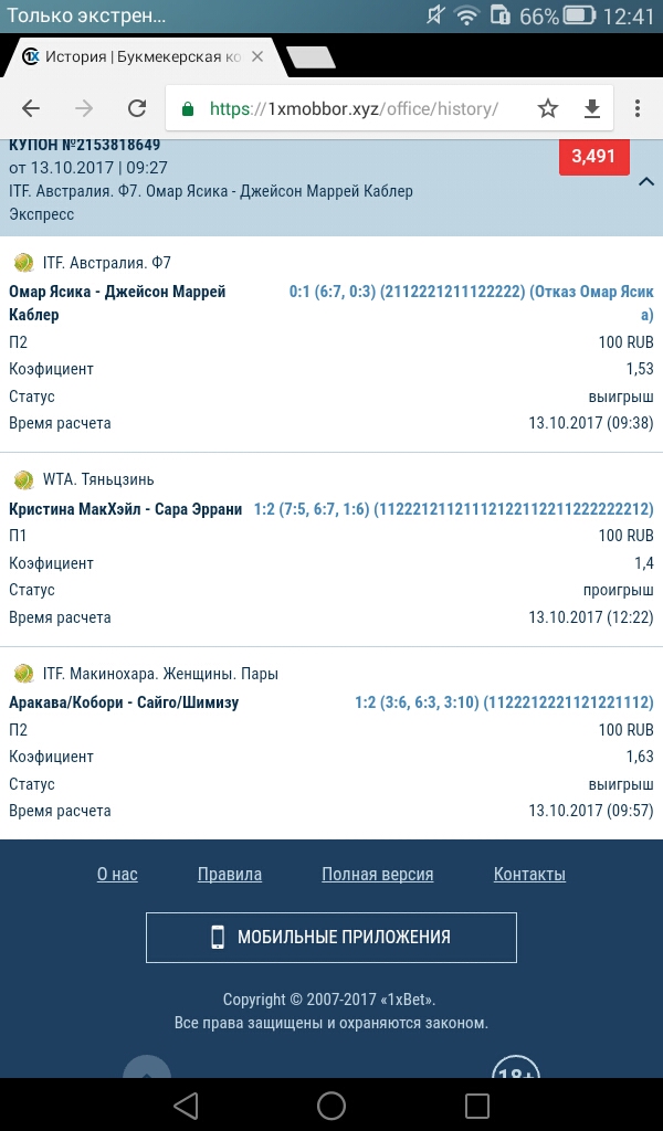 Блин,ни разу пятничный бонус не отбивал в 1xbet.сегодня МакХэйл вела по сетам 1-0,и во втором сете 6-5 на своей подаче.и...слилась.надо,наверное,свечку поставить и депнуть в следующую пятницу косарей пять.глядишь,и отобью...)Screenshot_2017-10-13-12-41-21.jpeg