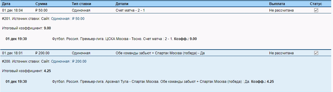 1)Обе команды забьют + Спартак Москва (победа)
