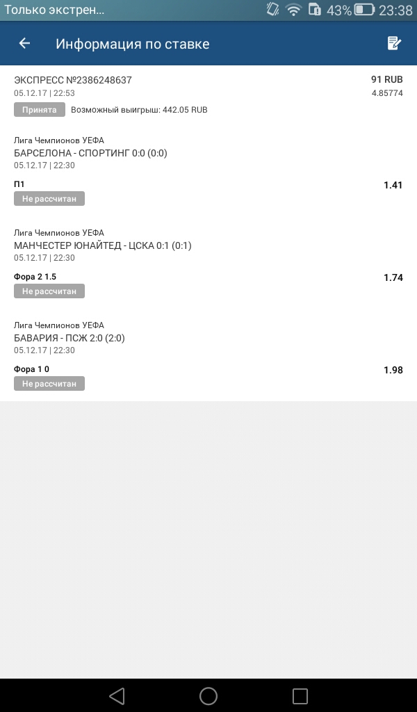 блин.говорила мне мама не играй в автоматы..)))поднялся до штуки и пошёл в слоты.еле ноги унес,и со злости на последние экспресс бахнул.вроде все заходит,только Барса еле еле бегает...Screenshot_2017-12-05-23-38-38.jpeg