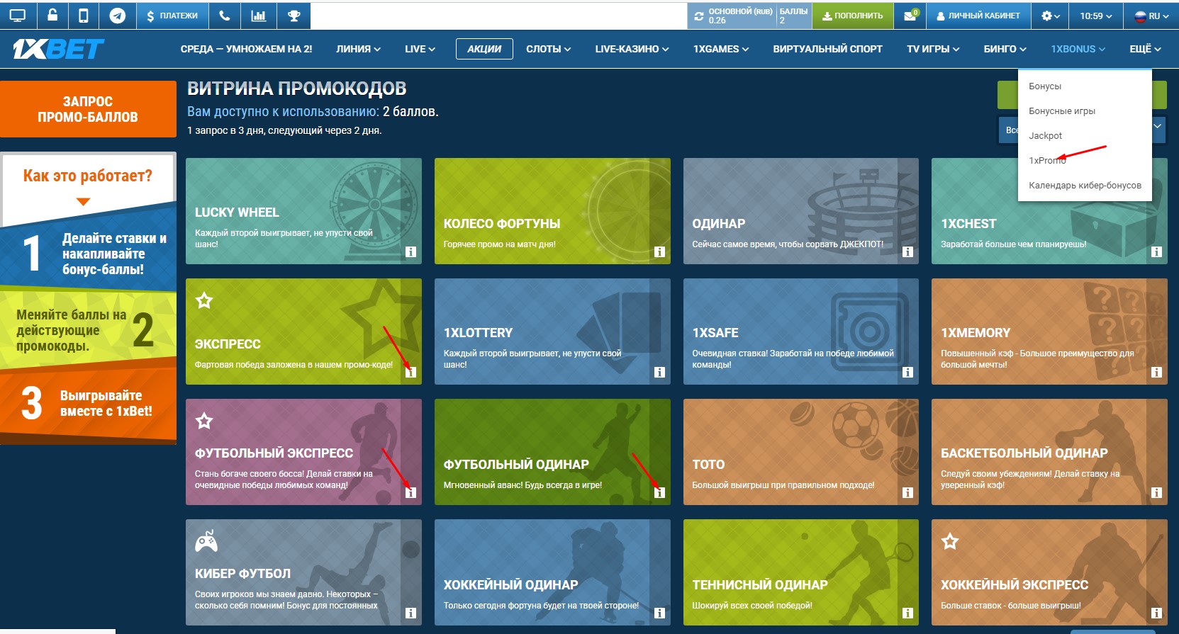 Сюда заходишь и выбираешь что по душе.Я практически всегда беру Эксспрес. Обмениваешь балы на код.Набираешь матчи и вводишь код .И у тебя ставится ставка равная твоим балам 100балов=100руб