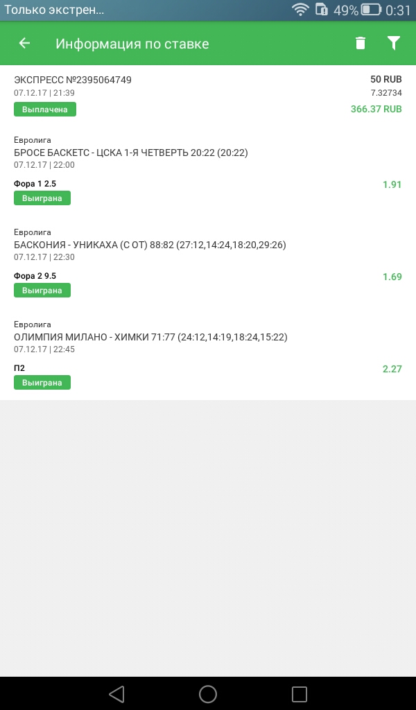 я,сколько играю,всего раз пятничный бон отмыл.вот,кстати,классика игры на баскете в лайве.команда 1 изначально идёт явным фаворитом.но к середине 3-й четверти проигрывает 12 очков.дают +11.я втыкаю.за две минуты четвёртой четверти она ликвидировала 12 очков отставания и вышла вперёд на два очка.зная,что фору я по любому пробил,я доставляюсь на чистую победу фаворита и вуаля...)в своё время,когда в моём распоряжении суммы на порядок выше были,за один матч спокойно можно было 10-20 к.занести без палева..)Не,я так не умею. Завтра пятница,а это почти выходной. Да выходной) разменял кредиты,депнул и дали бонус счастливая пятница. Но там одни экспрессы из трех событий мин.и кэфы не ниже 1,40. Ставлю все. Или завтра проснусь пустой,или в теме про алкоголиковardon:. Посмотреть вложение 35369 Посмотреть вложение 35370